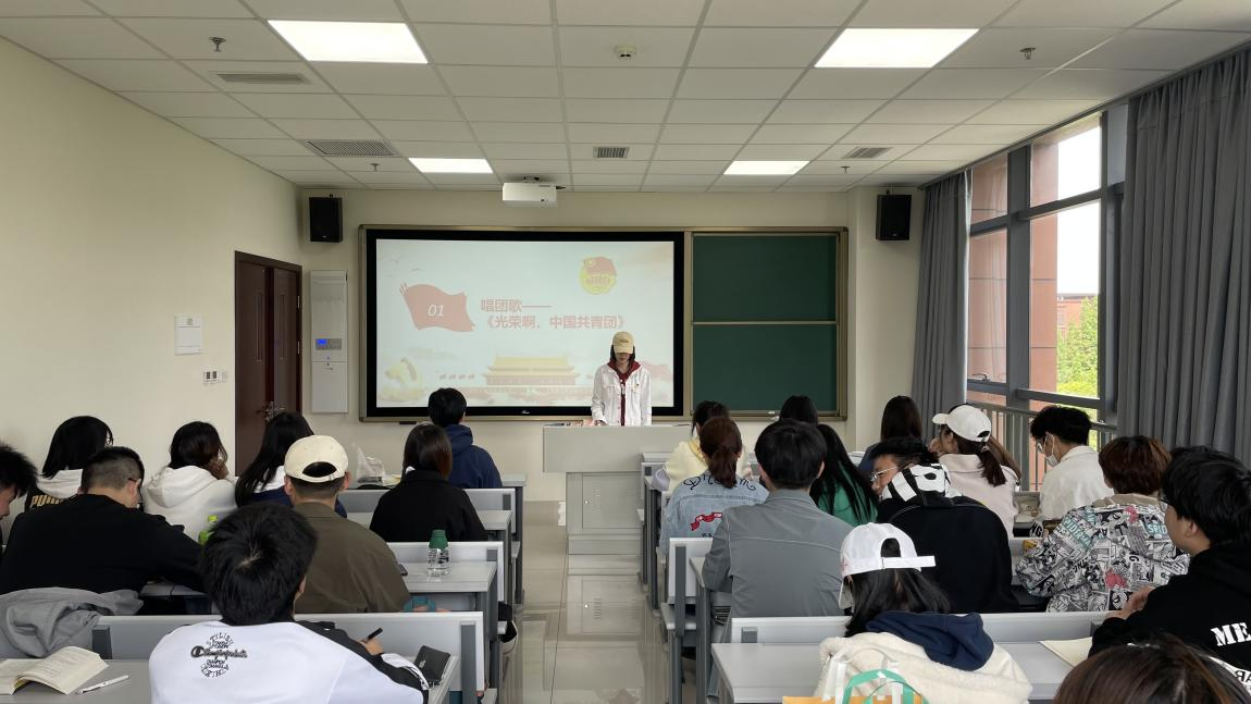 首先,团支部书记曹颖带领全体成员共唱中国共青团团歌——《光荣啊,中国共青团》。