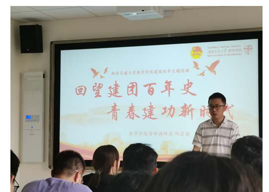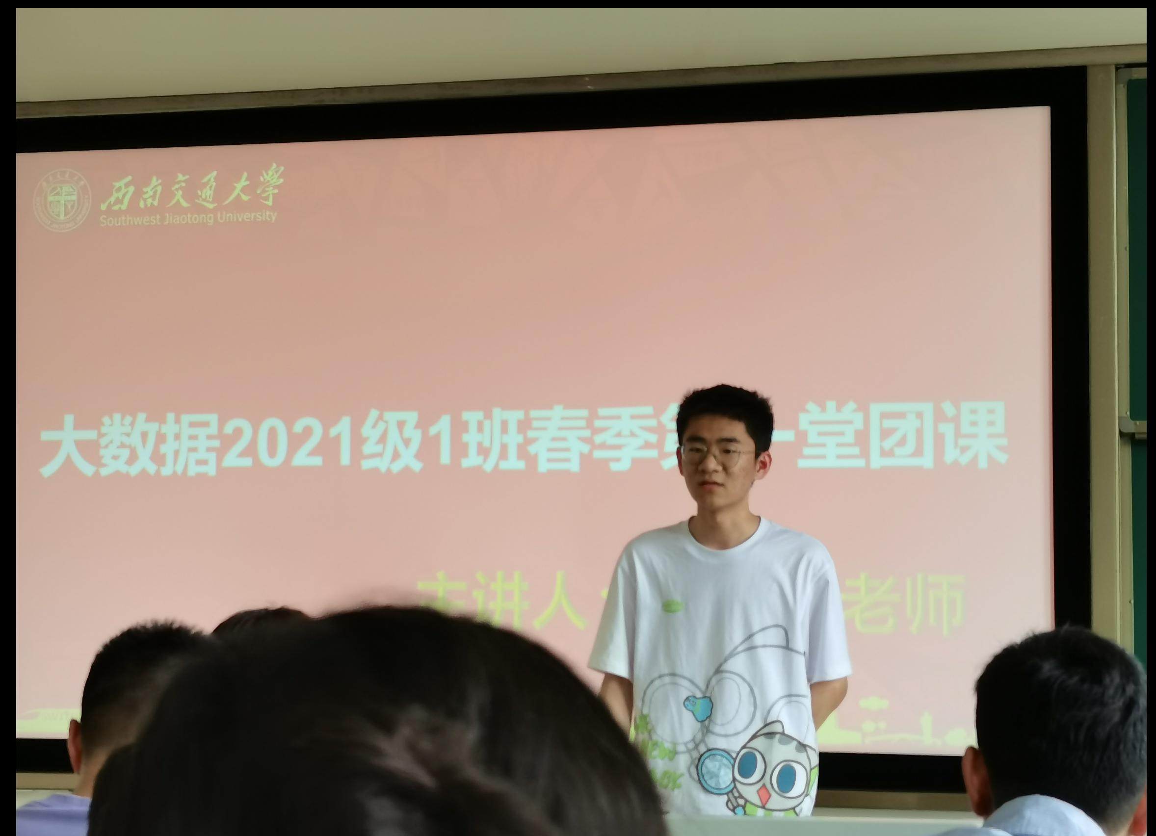 为迎接和宣传党的二十大,庆祝中国共青团成立100周年,贯彻落实“全团大抓基层”工作要求,团结引领广大青年坚定跟党走、建功新时代,激发交大学子爱国荣校热情,应学校学院要求,结合支部工作实际,大数据2021级1班团支部于2022年4月22日15:50至17:25在X30415举行春季第一堂团课活动,邀请了vwin德赢ac米兰官网“青年讲师团”成员本科2021级辅导员邱君捷老师进行宣讲。本次团课主题为“回望建团百年史,青春建功新时代”,支部成员应到26人,实到24人,另有三名青年学生参与,支部成员参与团课积极性较高,展现了团支部的青春活力与爱国爱党热情。
