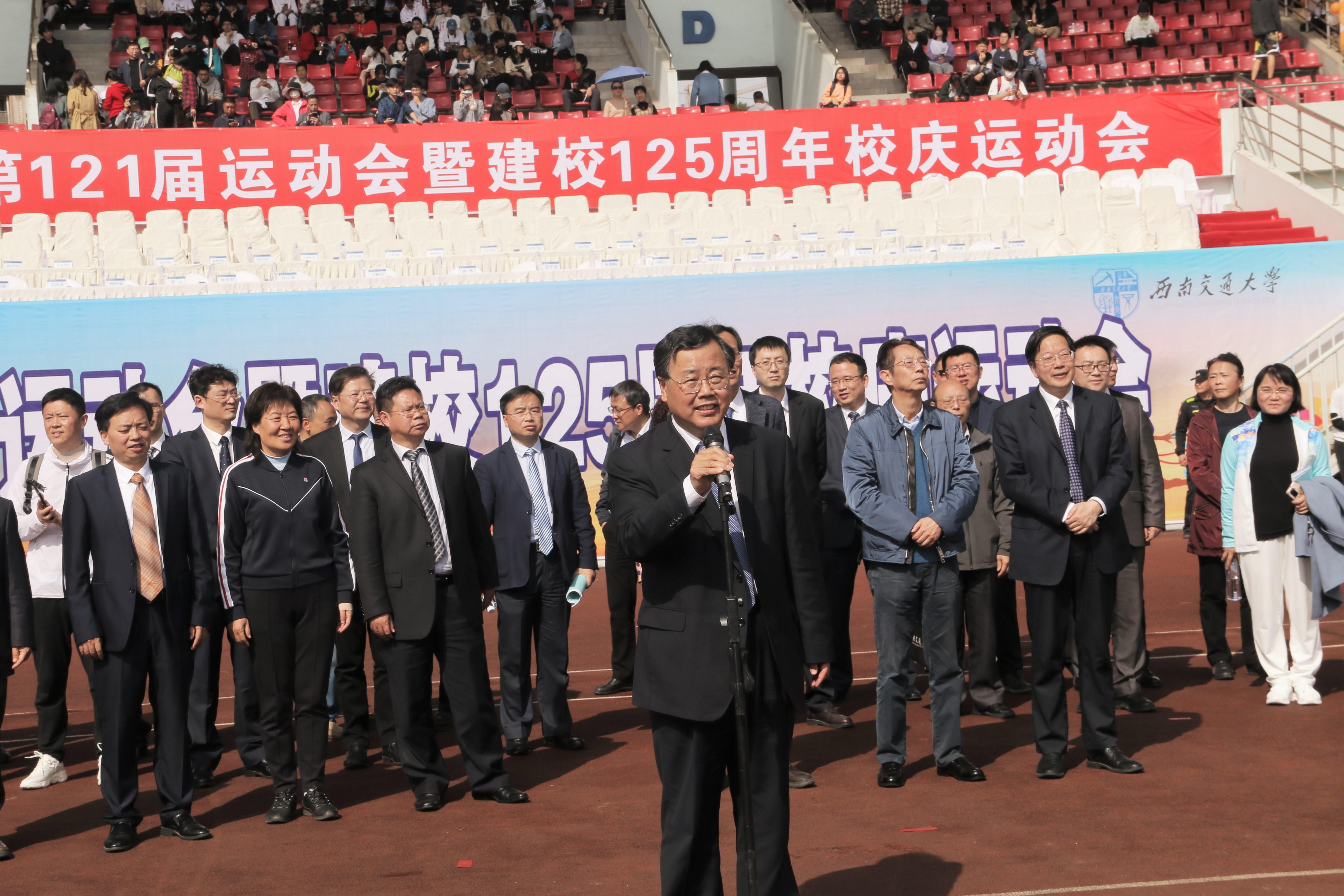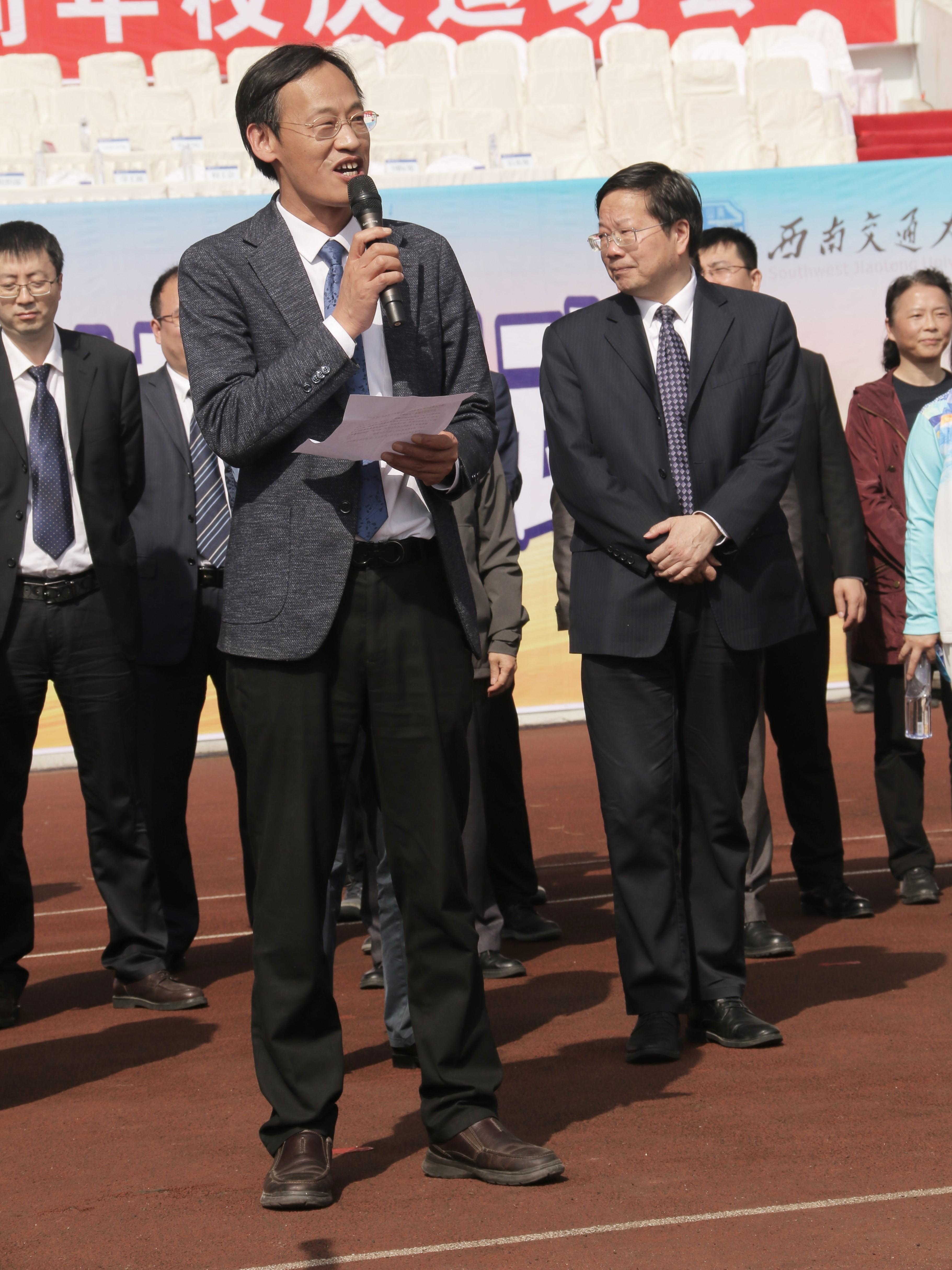 为树立“健康第一”的教育理念,实现“享受乐趣、增强体质、健全人格、锤炼意志”的目标,全面提升师生体质健康水平,同时喜迎建党100周年,庆祝建校125周年,vwin德赢AC米兰合作于4月16日上午8:30在犀浦校区北区体育场举办了第121届运动会开幕式。参赛人员由全体教职工及各学院优秀运动健儿们组成,vwin德赢ac米兰官网学生代表队由vwin德赢ac米兰官网党委副书记黄祥作团长,20级辅导员周睿作领队,共派出24名学生参赛;教职工代表队由vwin德赢ac米兰官网工会主席田俐萍作团长,工会文体委员阳锐顺作领队,共派出25名教职工参赛。本次运动会开幕式的主持人是vwin德赢AC米兰合作副校长周仲荣教授。