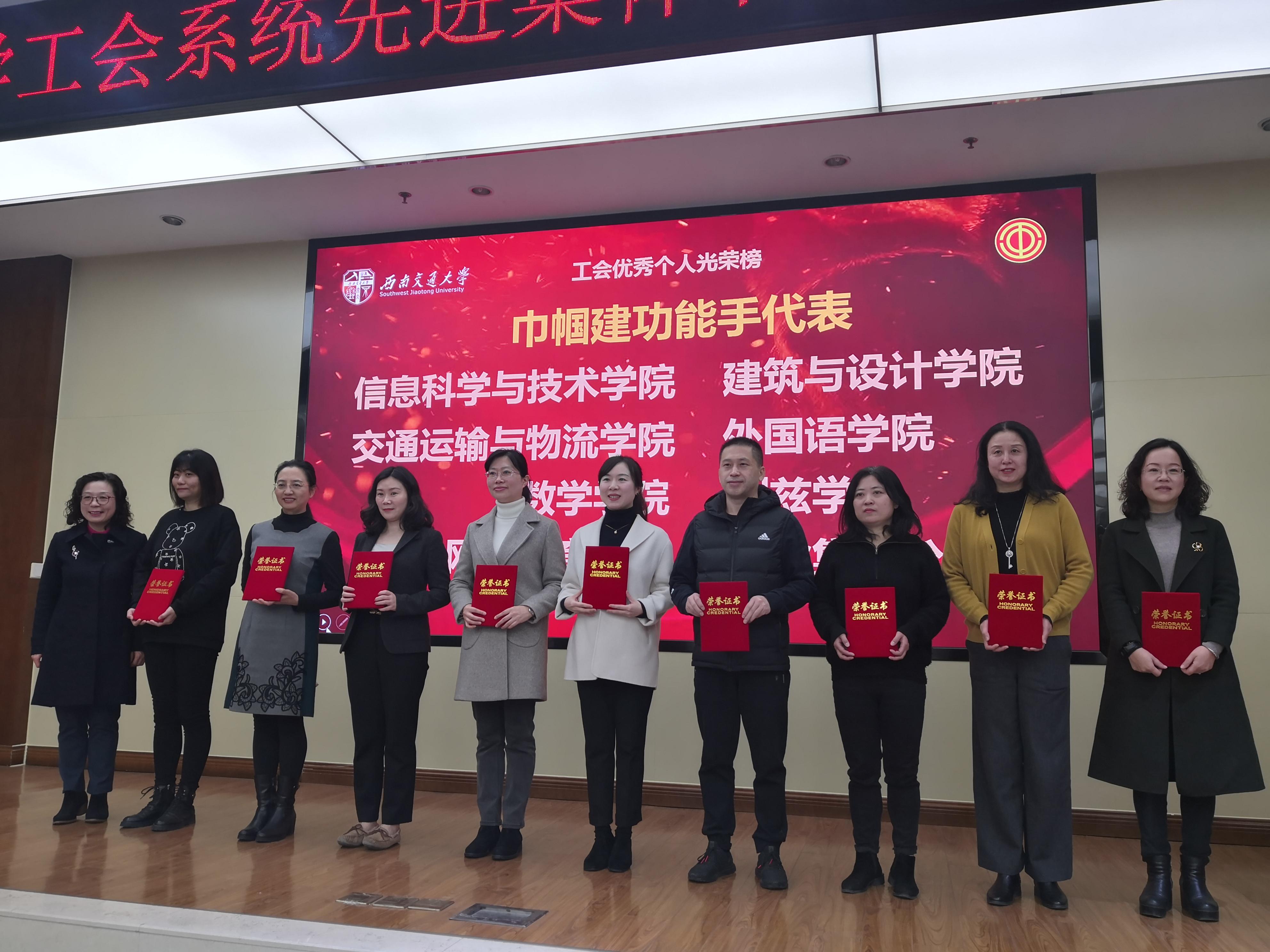 本次表彰大会,vwin德赢ac米兰官网工会荣获“模范职工小家”称号,vwin德赢ac米兰官网中公共数学课程思政示范教学团队荣获“巾帼文明岗”,阳锐顺、郝虹、徐革荣获“工会优秀工作者”,杨晗荣获“优秀工会之友”,邓绍高、韩帮胜荣获“优秀工会积极分子”,冯颖荣获“巾帼建功能手”。