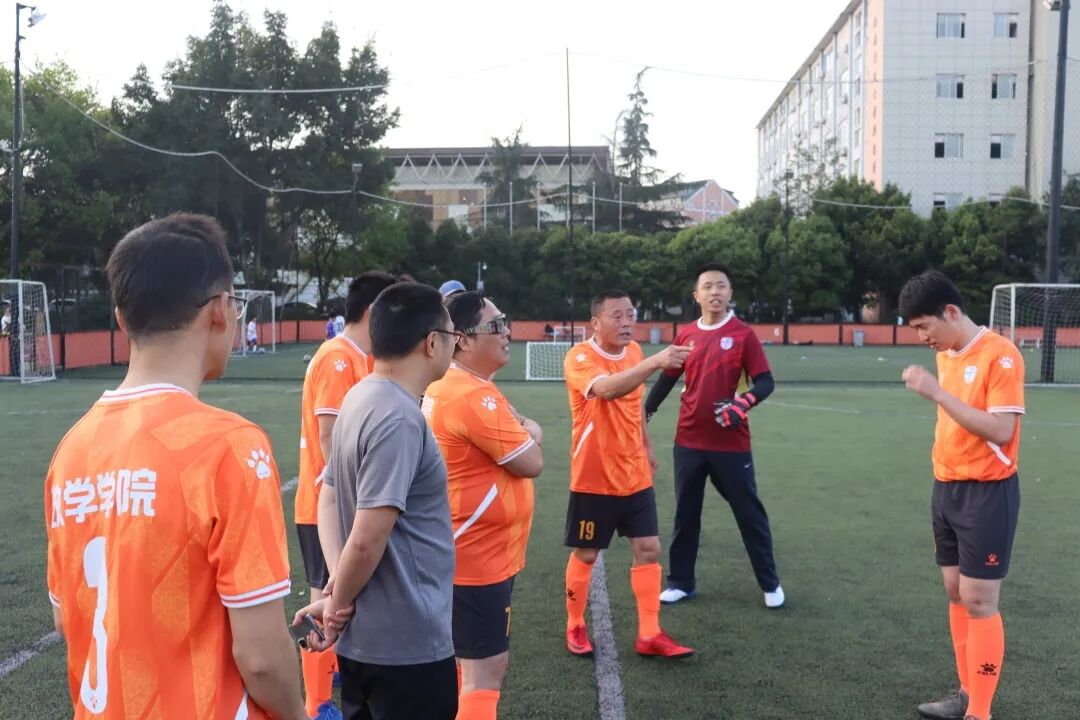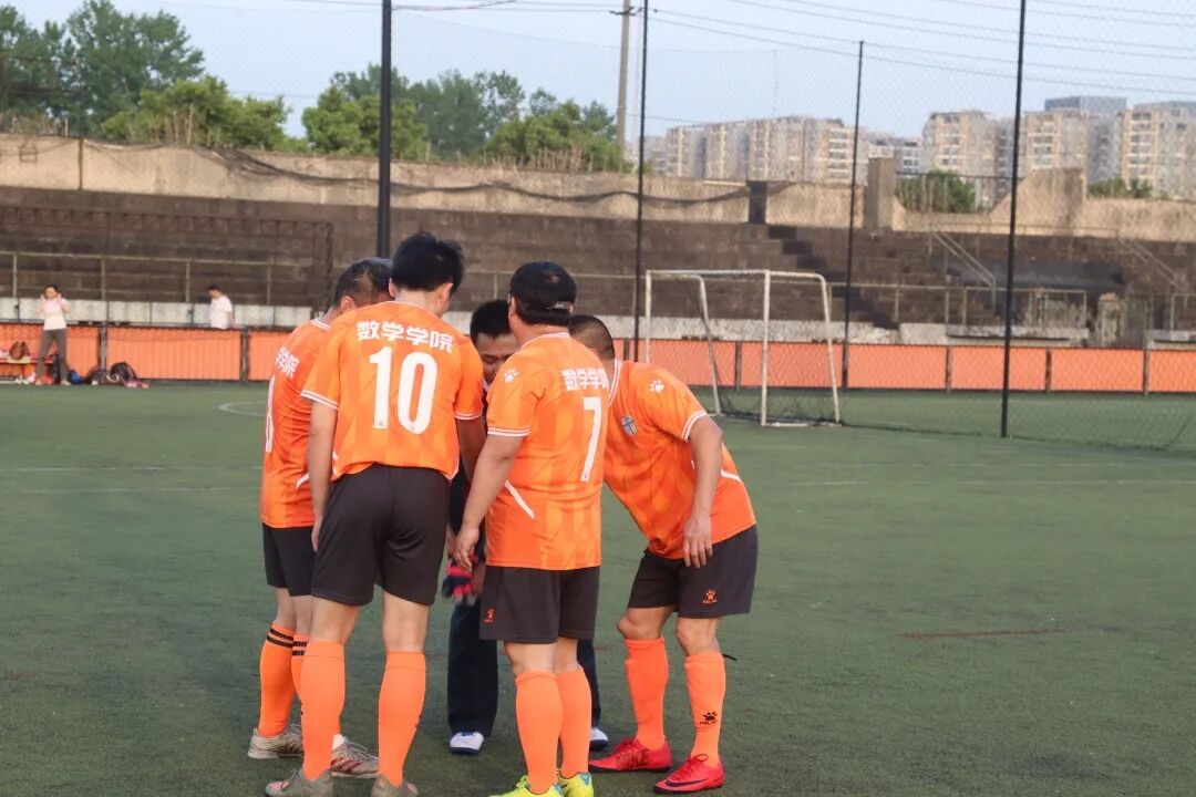在本届比赛中vwin德赢ac米兰官网足球队取得院史突破,离不开学院领导和全体师生的支持和殷切关怀。比赛中的剪影令人动容:赛前动员会上大家积极对本场比赛的打法建言献策,团结精诚。丁修勇老师即便身体有伤也主动换上球衣待命。中场休息时,卿铭老师主动请缨为学院贡献自己的一份力量。潘志刚老师、阳锐顺老师即便无法出场,也到场为队友们加油打气。这一幕幕生动的画卷,浓缩出了vwin德赢ac米兰官网全体师生拼搏团结的精神风貌和“胸有凌云志,无高不可攀“的豪迈气概。vwin德赢ac米兰官网教职工足球队创造院史挺进淘汰赛,其中蕴含的亦是vwin德赢ac米兰官网践行”数理扬华“的生动展现,在这种精神风貌的引领下,vwin德赢ac米兰官网用行动诠释出”我们走在大路上“,定将于未来谱写出新的历史诗篇。
