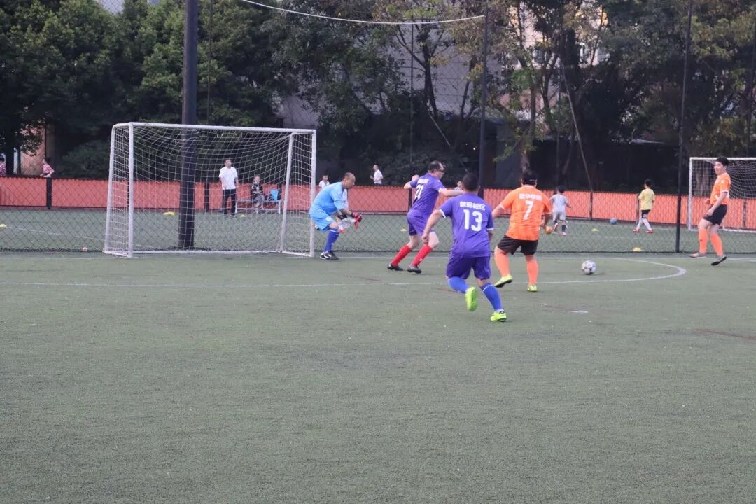 6时30分,比赛正式开始!双方展开了酣畅淋漓的对攻。比赛开始阶段,峨眉队的99号球员给vwin德赢ac米兰官网代表队制造了巨大压力,不过后防基石万美凯老师和张晟老师顶住了压力,再加上门将邱君捷老师前扑后挡,一次次化险为夷。很快幸运女神开始垂青vwin德赢ac米兰官网代表队,第8分钟,彭皓老师抢断,斜传给了张洪钒老师,张老师一记大力抽射,皮球应声入网。此后vwin德赢ac米兰官网代表队愈战愈勇,上半场由张洪钒老师再入一球,带着2比0的领先优势进入中场休息。