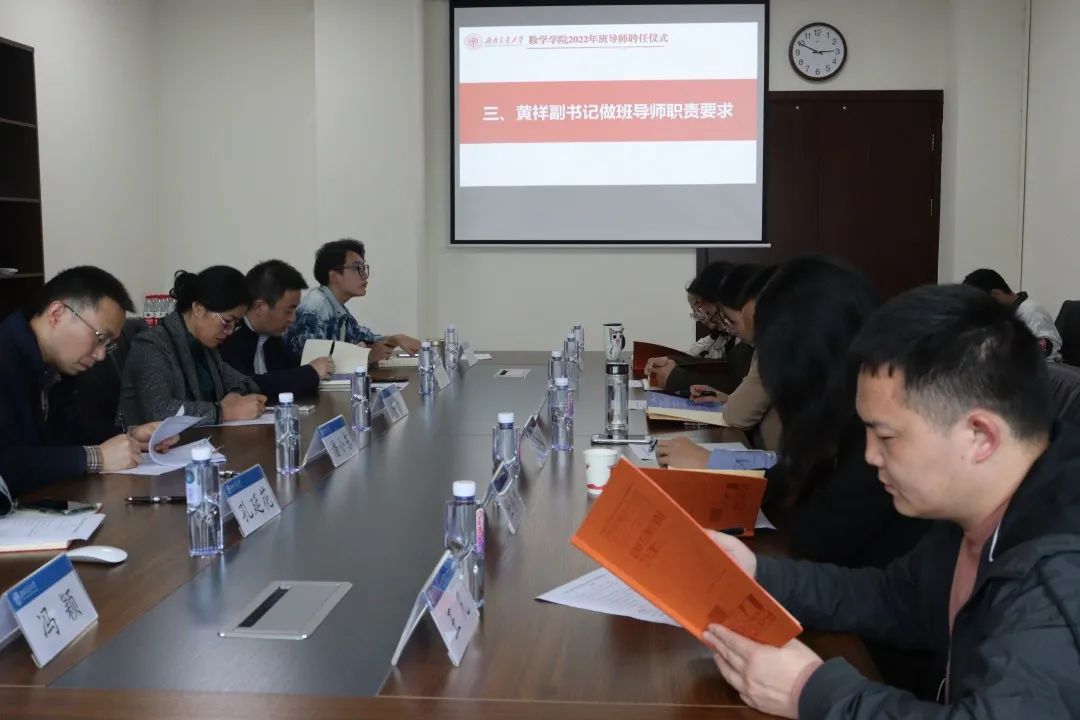黄祥副书记讲解班导师工作细节。他提到,班导师应与任课老师定期交流,对教学出现的问题及时沟通与交流,同时班导师需要做到因材施教,为学生提供针对自身特点的指导方案。班导师还应帮助引导学生专业学习,提升学生学习能力,使学生养成良好的学习习惯,进而进行系统化学术指导以提升学生的科研能力,最后为学生创造实践条件并为学生提供就业指导。