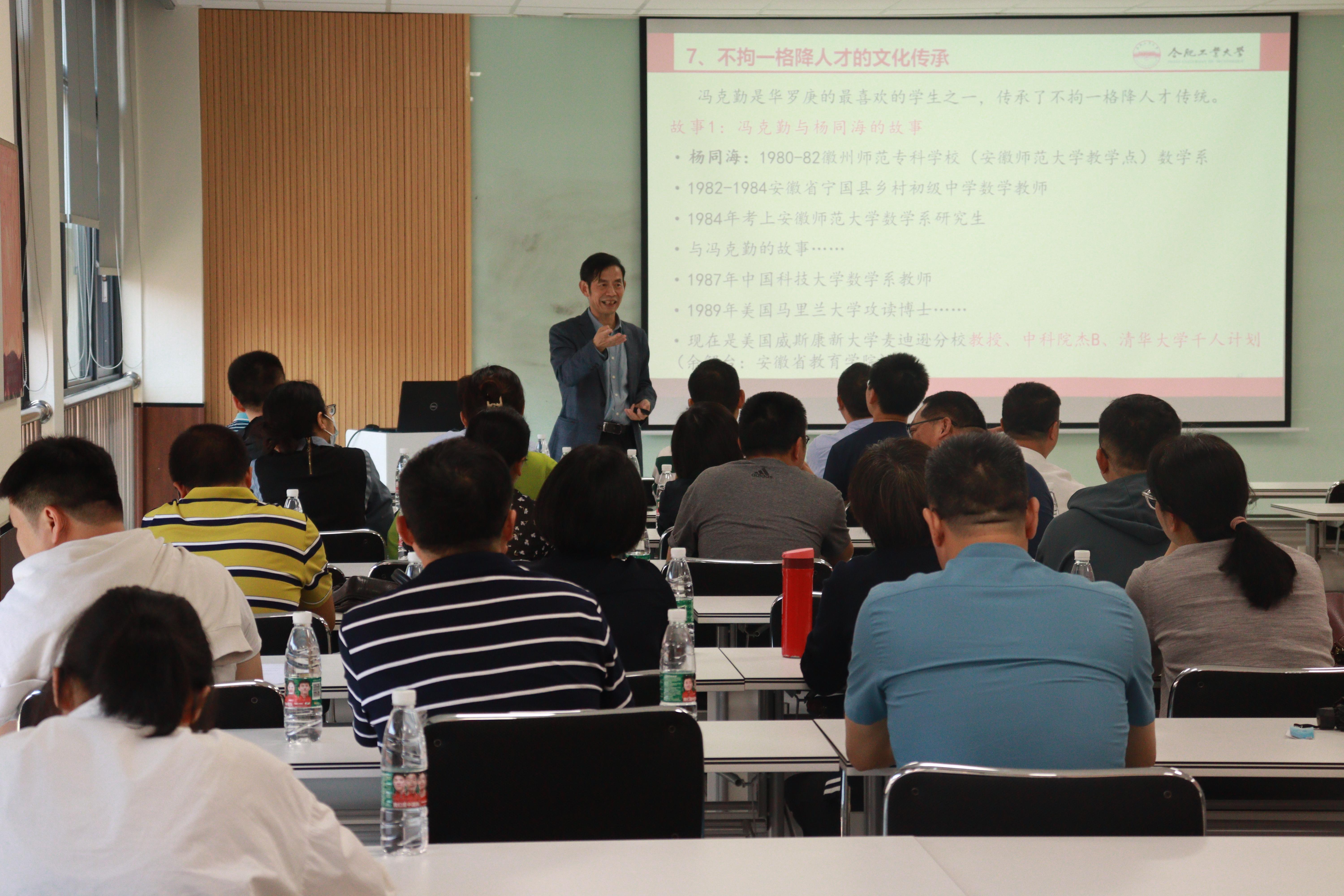 他又借逆矩阵的运算引出华罗庚矩阵形式等式,谈到熊庆来的不拘一格降人才、华罗庚的爱国精神,以及这些精神的文化传承。弘扬华罗庚把精力都用之于有用之所,为了国家民族,为了基础建设发展,为了抉择真理,为了为人民服务,为了伟大祖国的建设和发展而归国奋斗的精神。朱教授用这两个具体课程思政实例,示范了课程思政案例设计的思想。