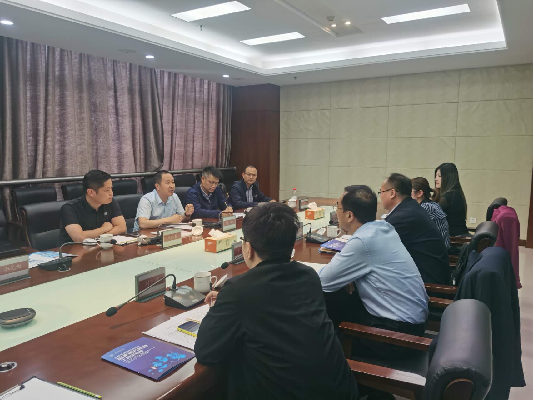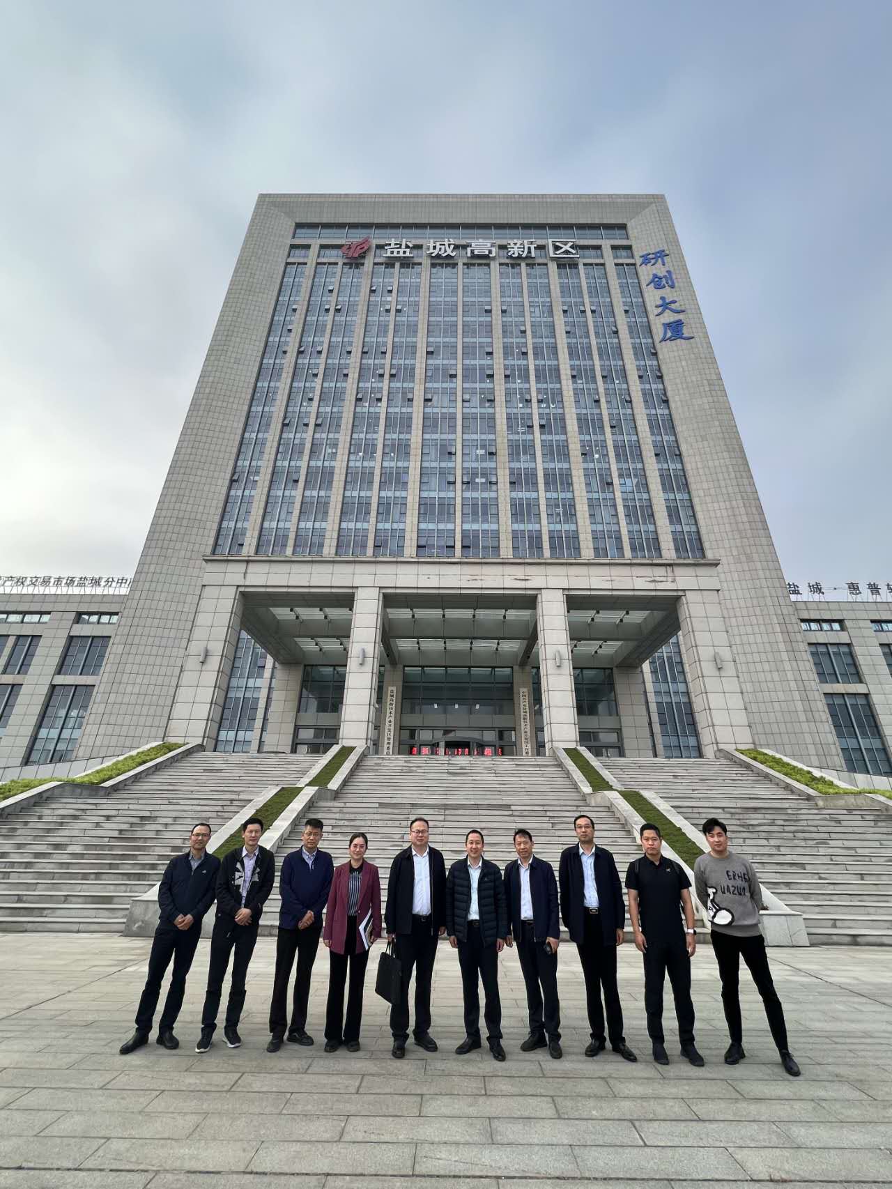 调研第二站和第三站分别是全国经济百强县的盐城市建湖县和盐城国家高新区。建湖县相关领导介绍了该县产业布局、人才引进政策以及推动石油装备、节能电光源和通用航空、新能源汽车及零部件等“2+2”产业向高端装备、新能源、电子信息产业升级、培育主导产业集群的思路与做法;科技局曾令群局长陪同考察了中聚信海洋工程装备有限公司、中锻重工科技(盐城)有限公司、江苏里下河刚才市场、琪航石油机械有限公司等企业,并介绍了培育与引进科研力量的有关情况。当地政府工作人员驻点对接服务企业并落实科技引领和高质量发展的系列举措和民营企业家尊重人才、创新实干的精神给考察组一行留下深刻印象。杨晗院长一行在盐城高新区领导陪同下,首先参观了上市公司东山精密,考察了国家超算中心盐城分中心、盐城大学科技园以及维信电子、是石科技等高成长性高新企业,并与企业专家就产业升级中数字化改造、智慧车间建设、科研成果转化、技术研发和市场推广、数据信息管理及平台搭建等进行了热烈交流。盐城市高新区的高新技术项目与vwin德赢ac米兰官网国地实验有很多合作契合点,实验室副主任韦洪雷和陈树伟老师分别介绍了可信性自动验证国地联合工程实验室可能参与的相关工作,双方开展了富有成效的交流。