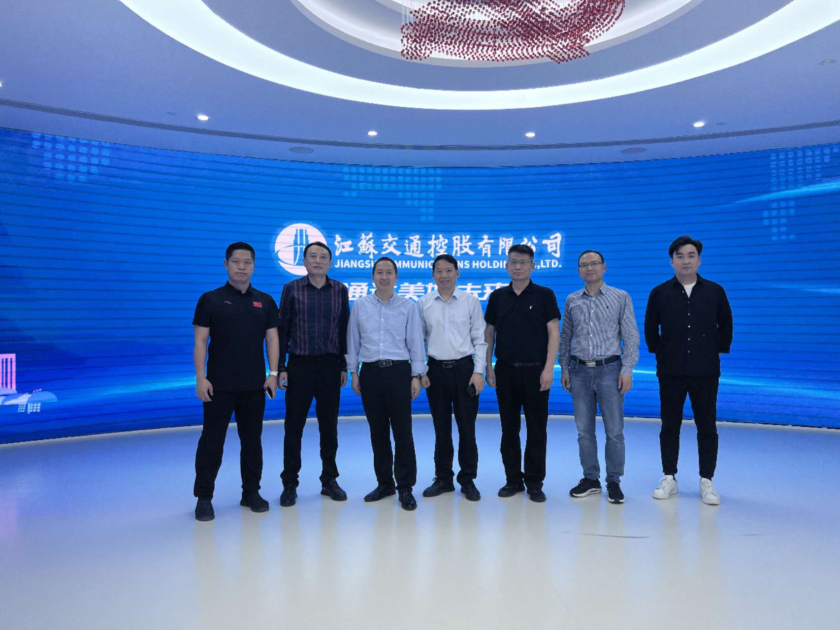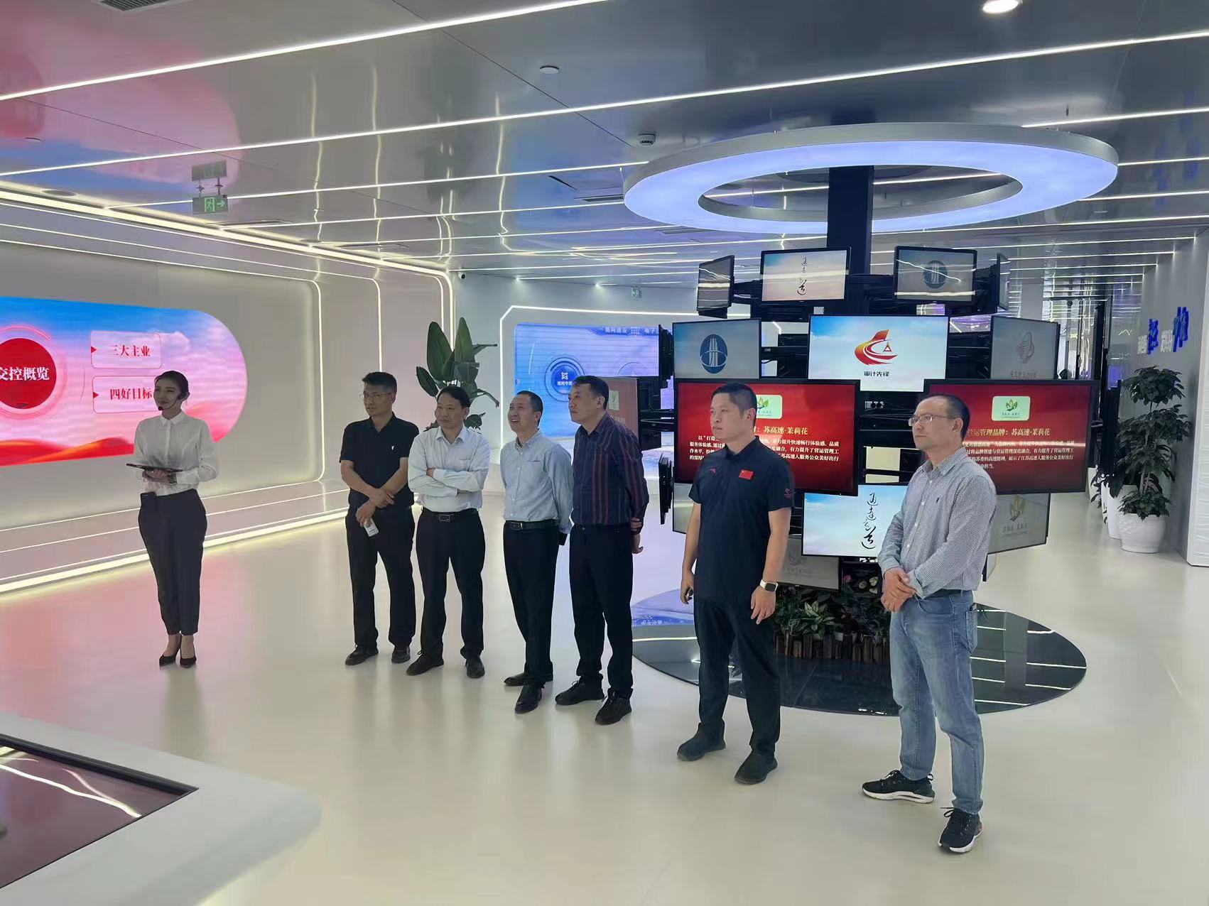 调研第一站是江苏交通控股有限公司(下称江苏交控)。杨晗院长一行的调研考察得到了江苏交控的热烈欢迎,参观了江苏交控一体化展示馆。江苏交控是国内省级交通集团中唯一一家年利润持续超百亿的企业,已形成以经营性综合大交通投融资为主体、金融和“交通+”为两翼的“一主两翼”发展格局;作为交通类大型国企,江苏交控特别注重现代高新技术的深度应用,在综合交通大数据应用场景和对人工智能技术研发应用方面,期待与vwin德赢AC米兰合作开展战略合作。杨晗院长介绍了学院及国地实验室的概况和人才、成果与技术储备的情况,及国地实验室积极参与和服务企业、促进地方经济建设的初衷,表达了与江苏交控进行合作并积极参与数字赋能的 “产学研用”相关工作。