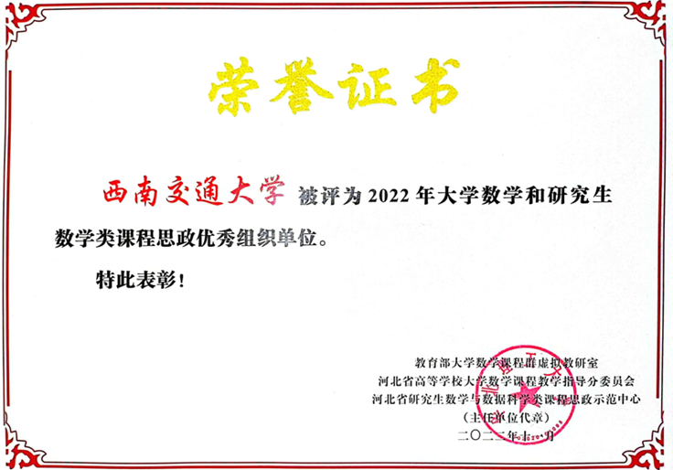 为深入贯彻全国教育大会、全国高校思想政治工作会议精神,推进大学数学课程群虚拟教研室数学类课程思政建设,2022年10月,教育部大学数学课程群虚拟教研室联合河北省高等学校大学数学课程教学指导分委员会和河北省研究生数学与数据科学类课程思政示范中心联合开展了大学数学和研究生数学类课程思政评选活动,vwin德赢ac米兰官网荣获优秀组织奖。