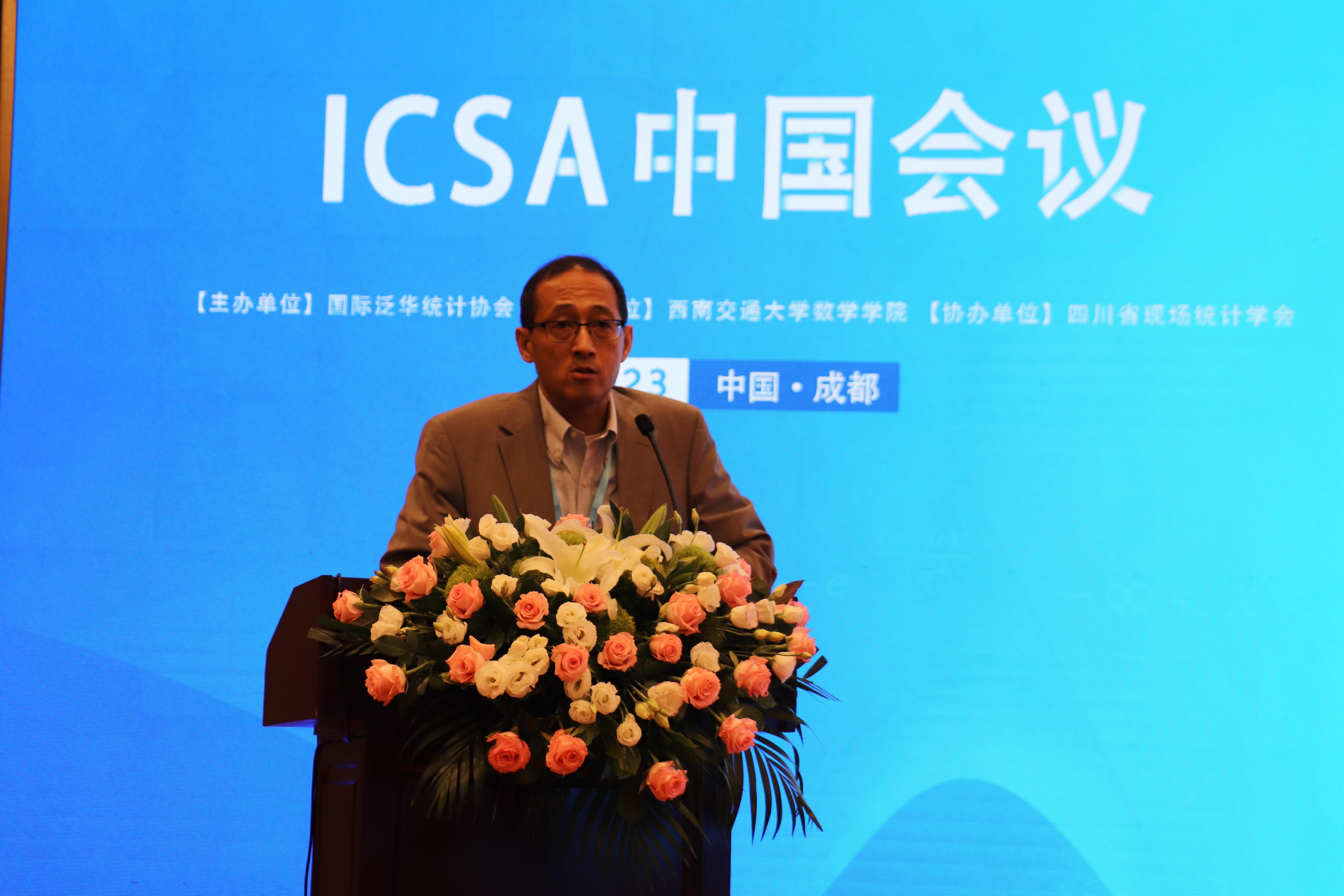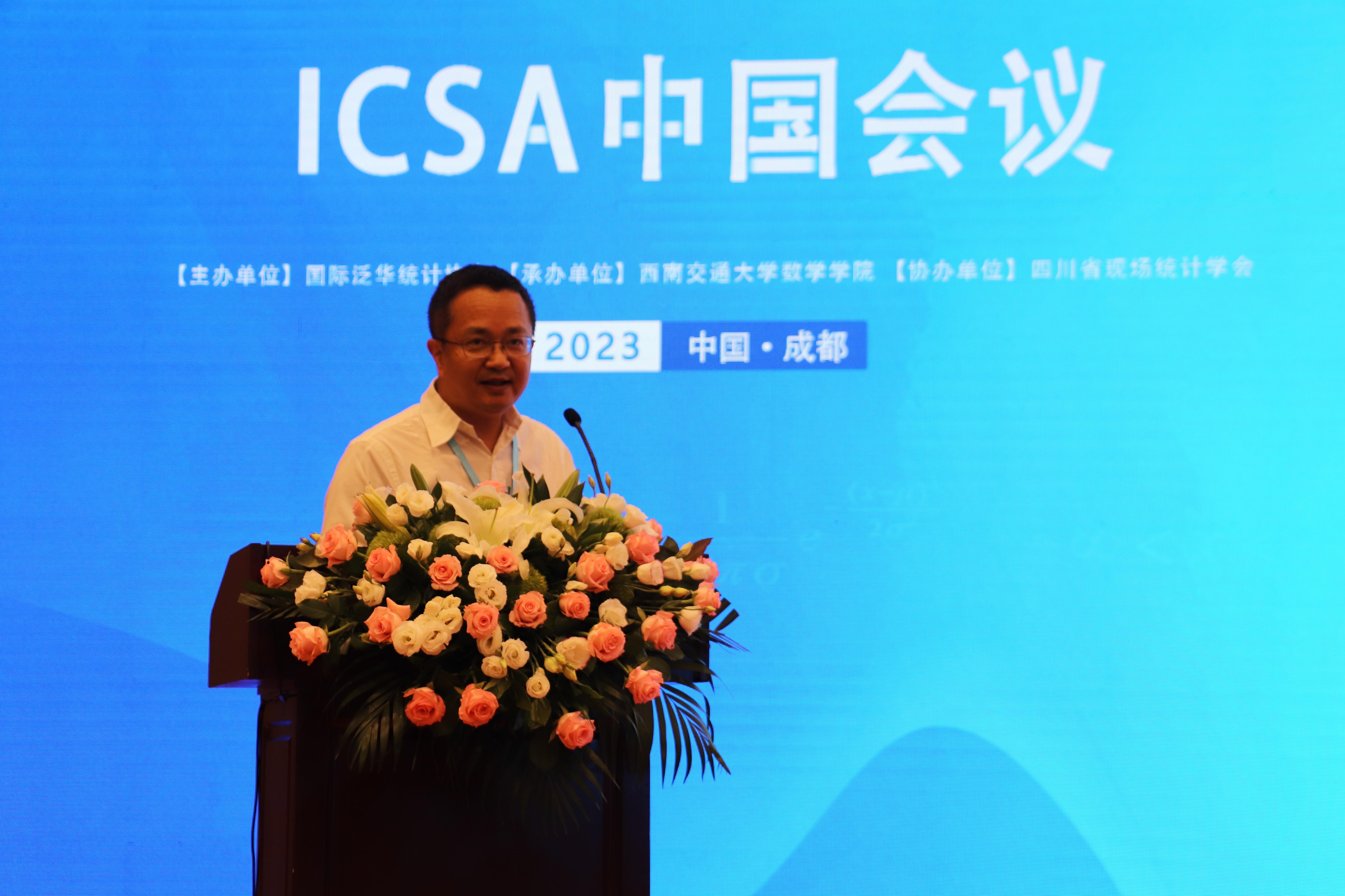 7月1日上午8时,2023ICSA国际泛华统计会议开幕式在成都举行。会议由国际泛华统计协会主办,vwin德赢ac米兰官网承办,四川省现场统计协会协办。来自海内外1000余名统计学界专家学者及各高校师生参加会议。会议邀请了海外学者260余名、国际著名统计期刊主编和副主编50余人、国家级人才20余人。vwin德赢AC米兰合作副校长康国政、ICSA主席李刚、四川省科技厅副厅长杨品华、ICSA执行主席赵骏、vwin德赢ac米兰官网党委书记徐革、会议执行委员会主席赵亦川等相关领导及负责人参加开幕式,开幕式由赵亦川主持。