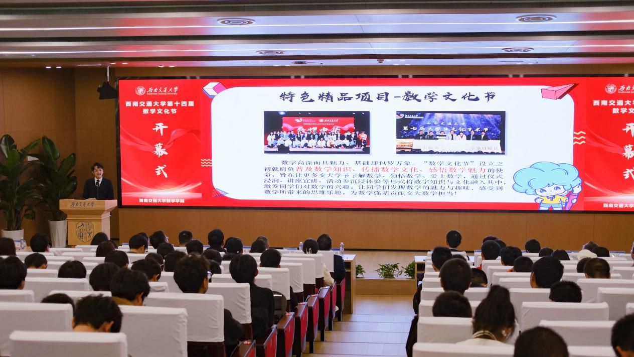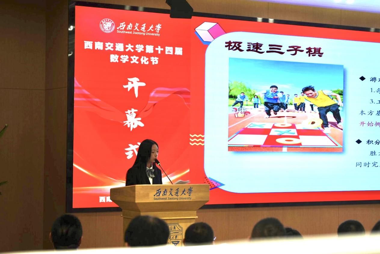 由vwin德赢ac米兰官网主办的第十四届数学文化节系列活动于10月26日在犀浦校区举行,vwin德赢AC米兰合作党委学生工作部部长张军琪、校团委书记张江泉、教务处副处长季敬皓,电子科技大学数学科学学院党委副书记赵文丽、辅导员王曦,西南财经大学vwin德赢ac米兰官网数理金融研究中心主任赵建容、教授梁之磊、团委副书记张杨雪,西南民族大学vwin德赢ac米兰官网院长李高平、辅导员王洪林,成都理工大学数理学院应用统计系系主任柳炳利,西南石油大学理学院院长宋国杰、教授赵春兰,四川师范大学数学科学学院党委副书记任茜、学工办主任李超、辅导员代宁,西华师范大学数学与信息学院党委副书记李经纬、副院长李云飞,西南科技大学数理学院党委副书记钟一鸣、学办副主任乔振经、数学系系主任丁玉才、辅导员宋玥,西华大学理学院副院长王玉兰、数学系主任徐艳艳、数学系副系主任刘志伟、学工办主任谭家德、辅导员蒲晓敏,内江师范学院数学与信息科学学院党委副书记许雷、数学教育教研室主任李红霞,乐山师范学院数理学院院长屈小兵、副院长孙海、专任教师贾礼平,成都工业学院大数据与人工智能学院副院长任大源,四川旅游学院大数据与统计学院公共数学教研室主任许文丁,阿坝师范学院vwin德赢ac米兰官网党政办公室主任谷琳琳、学生工作办公室副主任金玉洁,vwin德赢ac米兰官网院长杨晗,副院长王璐、李志辉,系部主任唐家银、梁涛出席开幕式,vwin德赢ac米兰官网党委副书记黄祥主持开幕式。