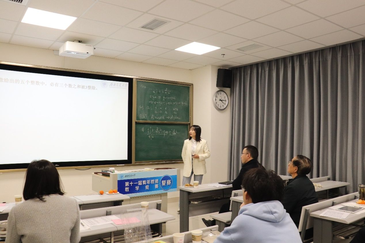 青年教师们积极热情地与大家互动,通过生动有趣的语言讲授知识,引人入胜,使严谨的公式推导内容不再枯燥无味。每位老师讲解完毕之后,评委老师都进行了现场点评,点评内容公正客观,指导性强。大到课程设计、教学流程,小到讲课节奏、情绪调动,评委们都仔细地为青年教师们给出了自己的评价与指导,并希望他们汲取经验,加以改进,从而实现教学水平不断提升。