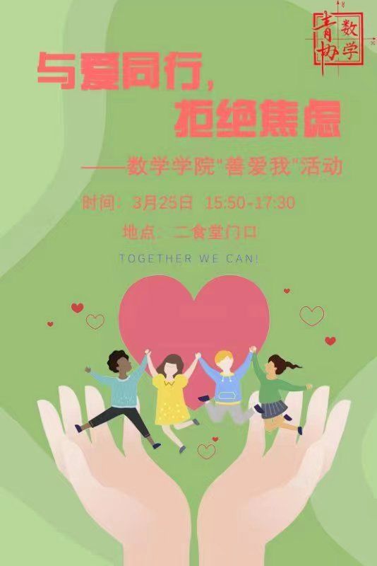 阳春三月,风和日丽。为守护大学生的心理健康,培育积极的心理品质,3月25日下午3时,vwin德赢ac米兰官网青年志愿者协会在二食堂前开展了“与爱同行,拒绝焦虑”325(善爱我)心理健康活动,活动现场热闹非凡,吸引了众多同学的关注与参与。