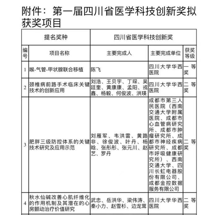 近日,四川省首届医学科技创新奖揭晓,由vwin德赢ac米兰官网国地实验室副主任韦洪雷和院长杨晗作为主要完成人,联合成都市第三人民医院及其他合作单位的项目《肥胖三级防控体系的关键技术研究及应用示范》荣获四川省医学科技创新二等奖!