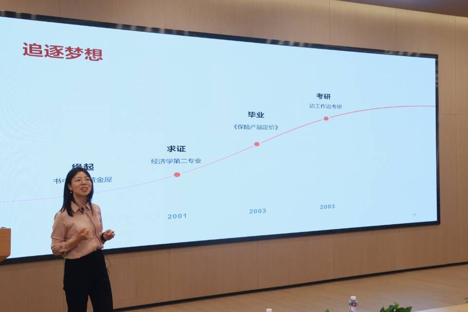 随后,汪佚丽详细阐述了精算师在保险行业中的核心作用和工作内容,并结合自己丰富的从业经验,介绍了精算师的就业方向和行业特色,让同学们对精算师的职业路径有了更具体和全面的认识,理解了这一职业在各个领域的重要性。
