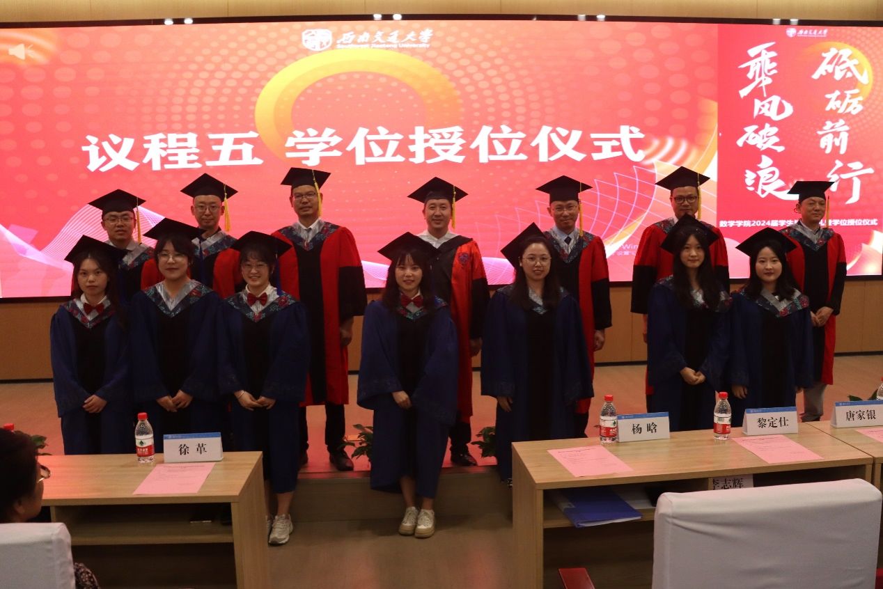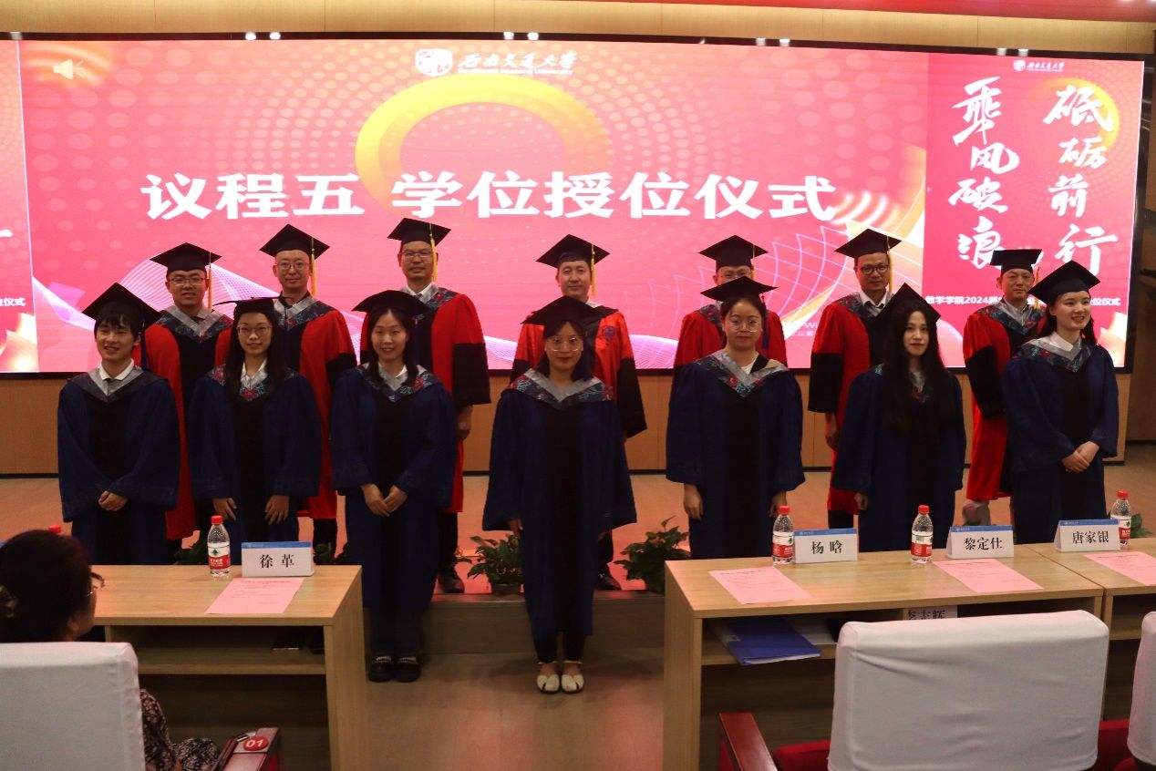 典礼第四项,学位授位仪式。由vwin德赢ac米兰官网学术分委会导师为毕业生逐个授学位礼并合影留念。