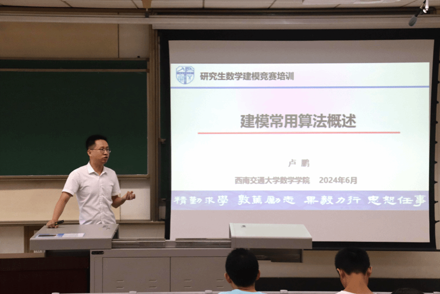 培训开始,徐昌贵老师围绕“研究生数学建模竞赛概述与准备”这一主题,向同学们介绍了赛事的由来及竞赛的时间表与报名流程等基本内容,帮助同学们对研究生数学建模竞赛进行初步了解,同时,他根据近年该竞赛赛题提出了培训建议,引导学生们找对方向,做好充足的赛前准备,并在数学建模竞赛的资料参考方面向大家进行了推荐与解惑,为同学们在研究生新阶段下,面对新高度的数学建模竞赛提供了基本的指导。