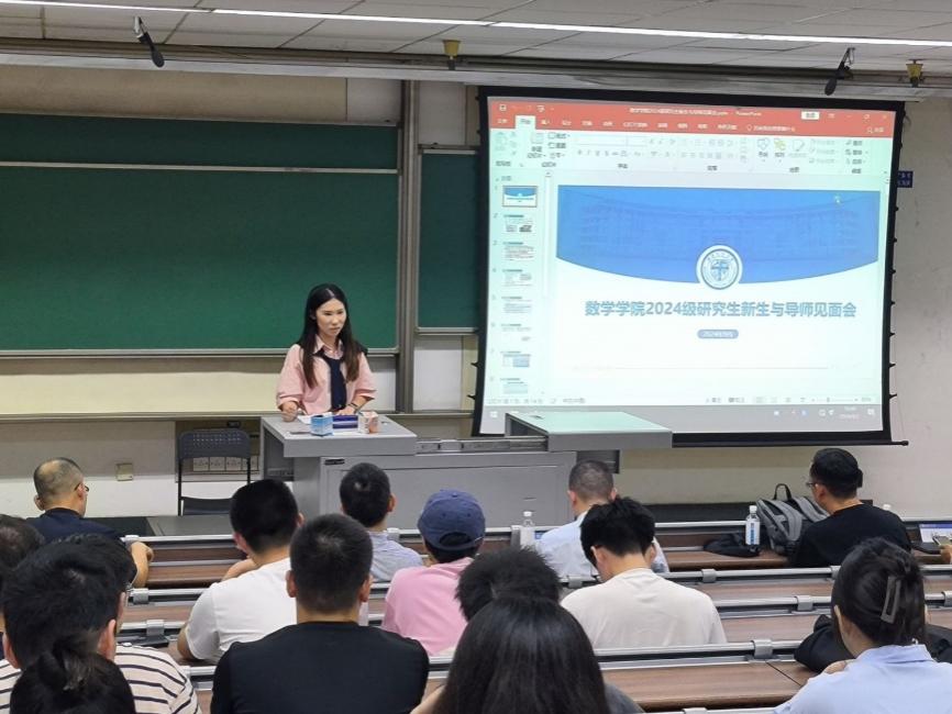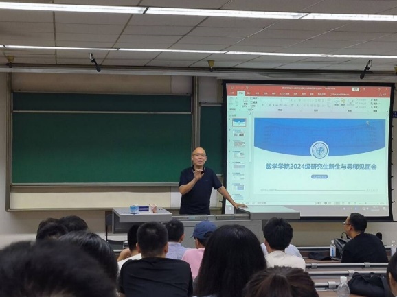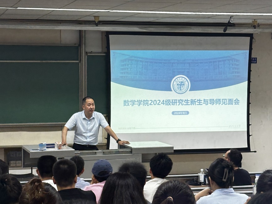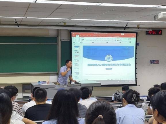 为帮助2024级研究生新生更好地了解vwin德赢ac米兰官网、熟悉培养方案,并做好入学教育工作,vwin德赢ac米兰官网于9月2日晚上在九里校区4522教室召开了研究生新生导师见面会。会议邀请了vwin德赢ac米兰官网院长杨晗、院长助理杨洋、数学系主任刘品、信息与计算科学系主任孟华、统计学系主任唐家银及研究生辅导员盖少通,与2024级全体硕士研究生和博士研究生共同参与,会议由辅导员盖少通主持。