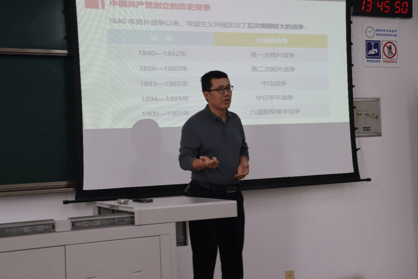 10月24日下午1时30分,培训第二讲“中国共产党的光辉历程”“中国特色社会主义”专题于X2325召开,主讲人为马克思主义学院副教授杨伟宾。首先,杨伟宾老师剖析了洋务运动、太平天国运动、戊戌变法、辛亥革命等民族救亡图存运动失败的原因,进而指出中国共产党诞生的历史必然性。