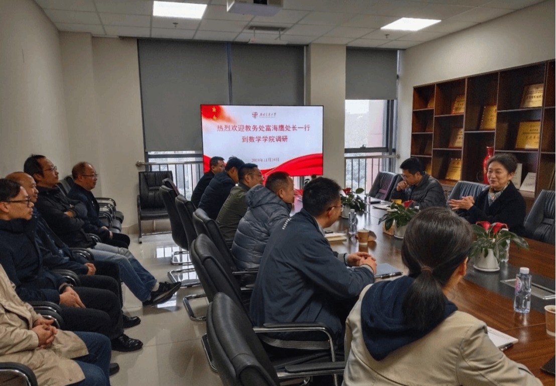 2024年11月18日,学校教务处富海鹰处长、创新与实践教学办公室李静波主任到vwin德赢ac米兰官网,对我院数学建模团队进行了调研交流。vwin德赢ac米兰官网杨晗院长、王璐副院长、潘小东副院长以及数学建模团队的全体老师参与了此次会议。