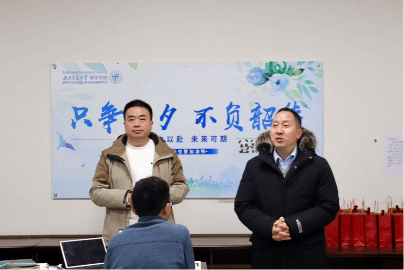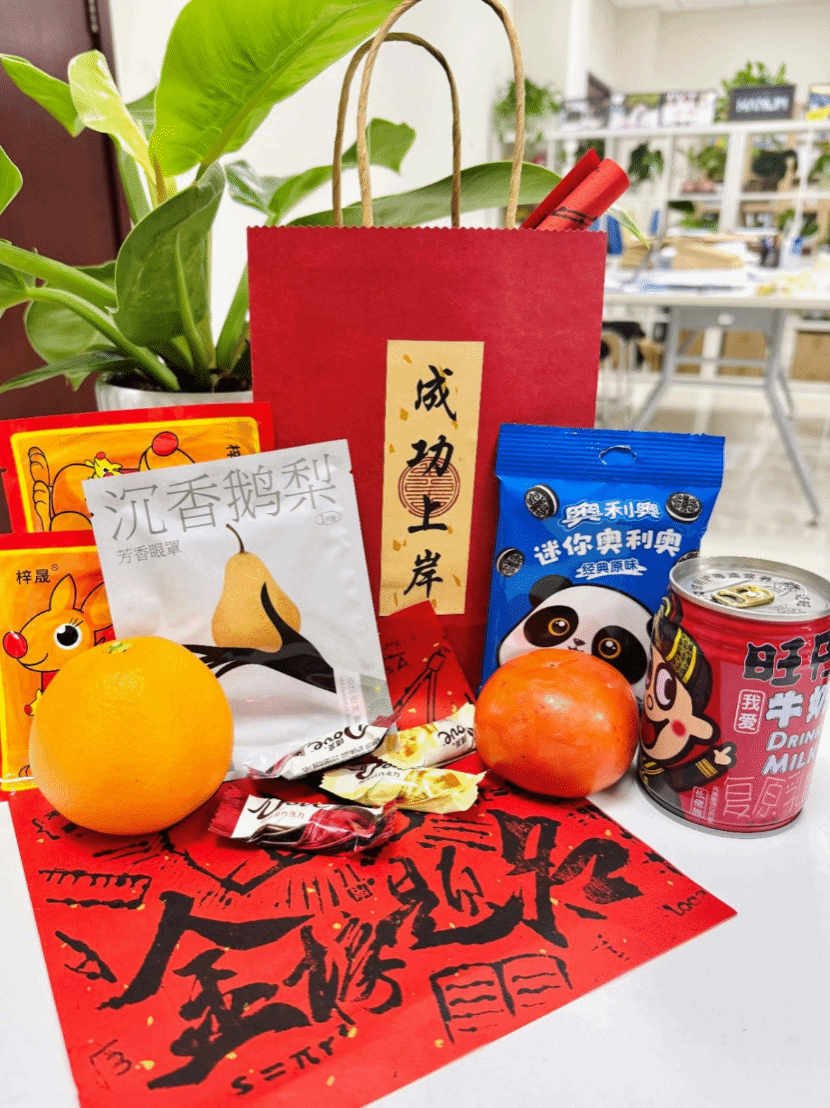 随后,杨晗院长,黄祥副书记,潘小东副院长向大家分发了精心准备的慰问礼包,同学们深受感动与激励,他们也将满载着学院的祝福与期许,以更坚定的信念和更饱满的热情去迎接考研的挑战。