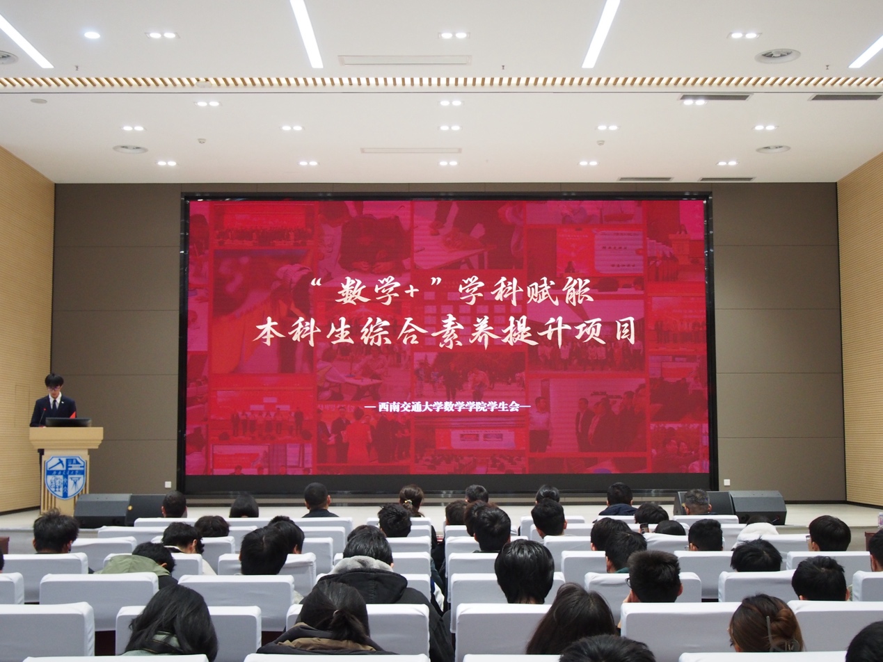 vwin德赢ac米兰官网学生会主席团成员王旭东向师生推介了“数学+”学科赋能本科生综合素养提升项目。此项目重点从数学学科强基、理工科交叉融合、数学文化节品牌活动、川内高校交流合作四个维度,构建了“数学强基、交叉融合、文化浸润、交通天下”的格局,用心用情开展让交大学子受益的精品项目,为数学强基贡献交大数学人的担当。