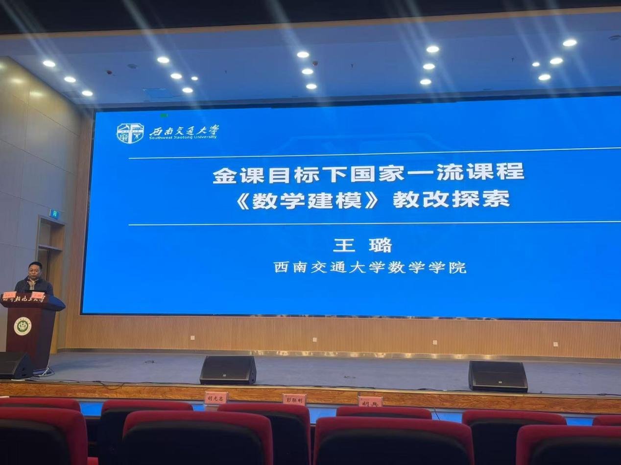 下午的会议中,王璐副院长就我院《数学建模》国家级一流课程建设实践进行了汇报发言。报告主要就我院数学建模课程在课程思政、混合式教学、数字资源建设等方面的做法进行了交流。