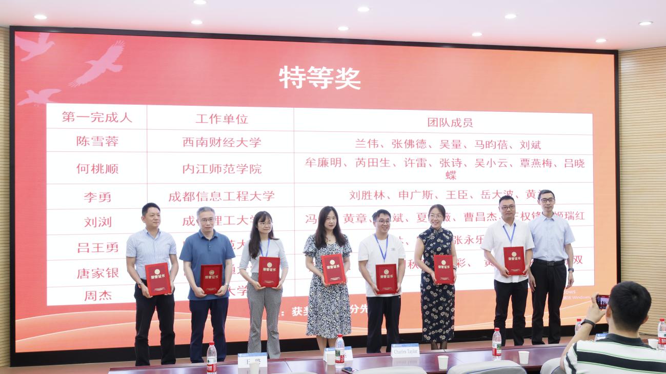 四川省现场统计学会秘书长王璐教授主持开展学会工作总结和教学成果奖颁奖仪式。其中,四川大学周杰教授、西南财经大学陈雪蓉团队、vwin德赢AC米兰合作唐家银团队、成都理工大学刘浏团队、成都信息工程大学李勇团队、四川师范大学吕王勇团队、内江师范学院何桃顺团队获四川省现场统计学会第二届教学优秀成果特等奖,40余支优秀团队及个人分获一、二、三等奖。