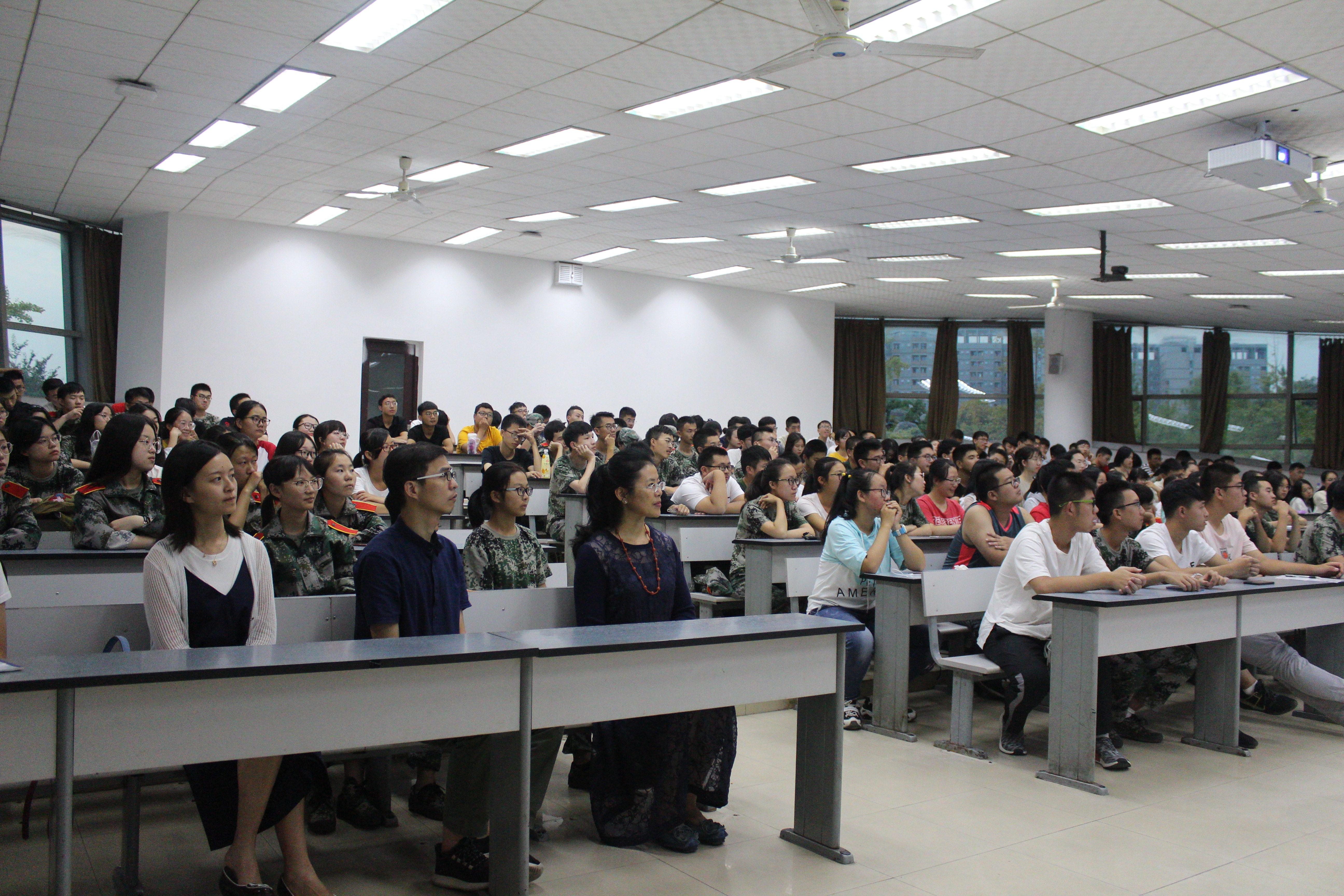 回顾百年交大历史长河,人才济济、熠熠生辉。他向新生讲述了何为“精勤求学、敦笃励志、果毅力行、忠恕任事”的交大校训,何为“严谨治学、刻苦钻研、艰苦奋斗、实事求是”的交大校风,何为“竢实扬华、自强不息”的交大精神。梁锦唐老师诙谐幽默、生动形象的讲述方式仿佛复活了逝去的交大时光,在场的人无不感同身受,备感激励,鼓掌示敬意。