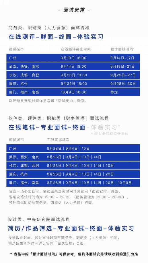 1:财务管理岗位面试城市为:广州、武汉、南京;电源工程师面试城市为:广州。