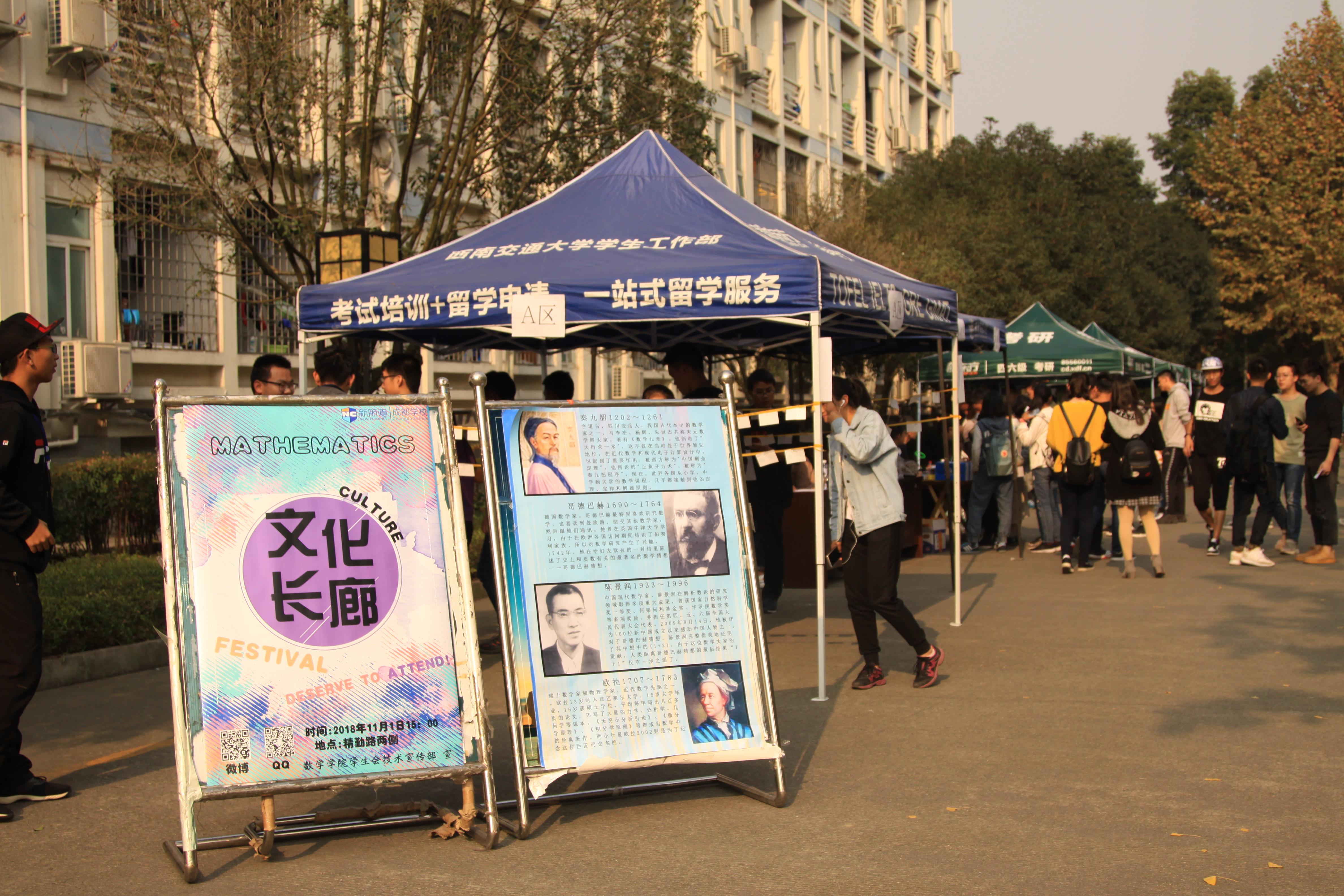 11月1日下午3时,数学文化节系列活动之文化长廊在精勤路两侧隆重举行。vwin德赢ac米兰官网团委书记邓思然老师、17级辅导员谢童心老师、学生会主席和副主席到场指导活动有序开展。