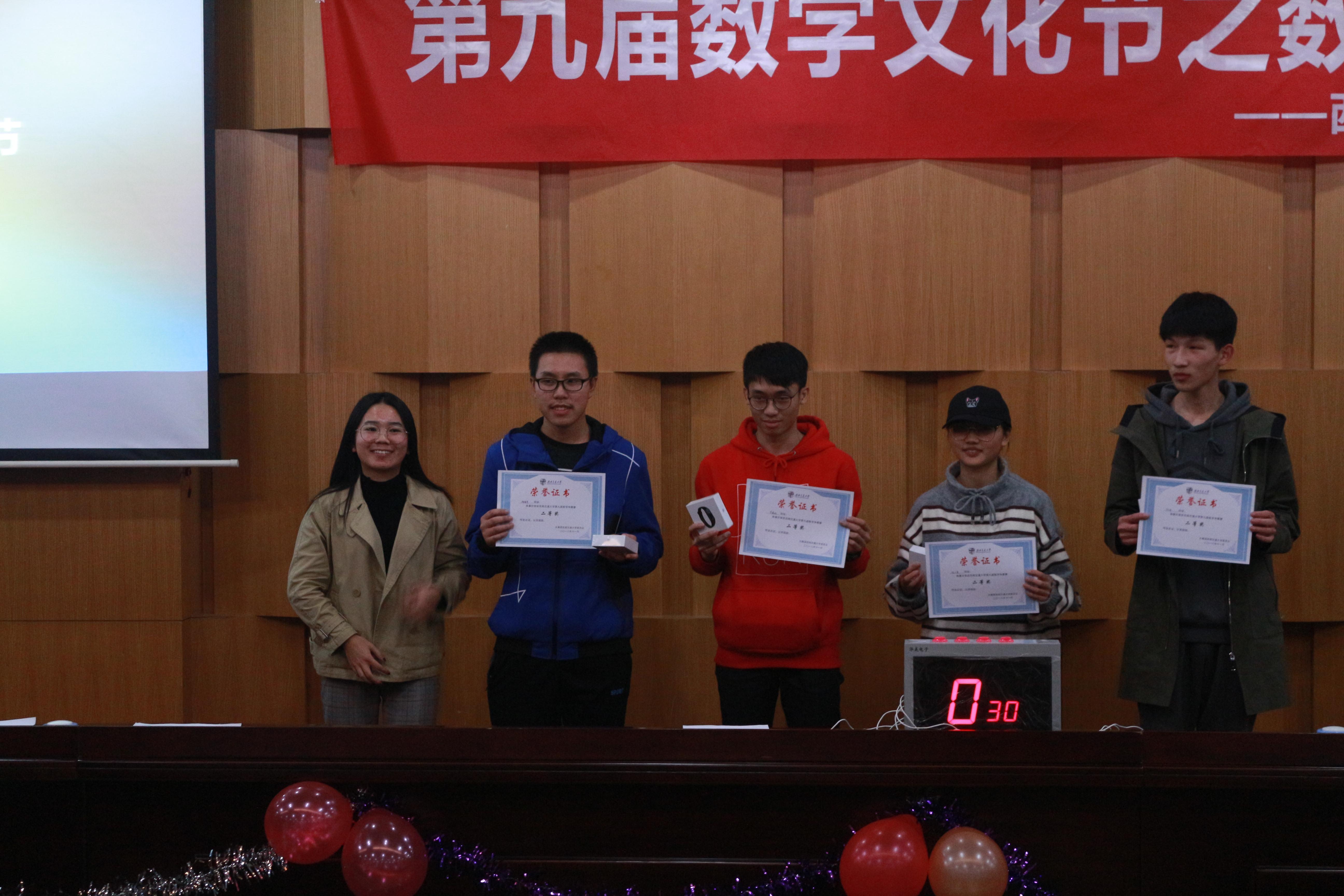 本次活动由vwin德赢ac米兰官网学生会承办,旨在让同学们在活动中体会到数学的乐趣,知数学、懂数学、爱数学,在今后的学习生活中能有饱满的热情与激情对待数学的学习,并将所学的数学知识很好的应用于自己的专业。总览此次活动,活动形式丰富多彩,不单单有参赛人员参与,还增加了观众可以参与的有奖竞猜环节;题目种类多样,包含了应用题,数学史,脑经急转弯等多种与数学相关的趣味性题目。