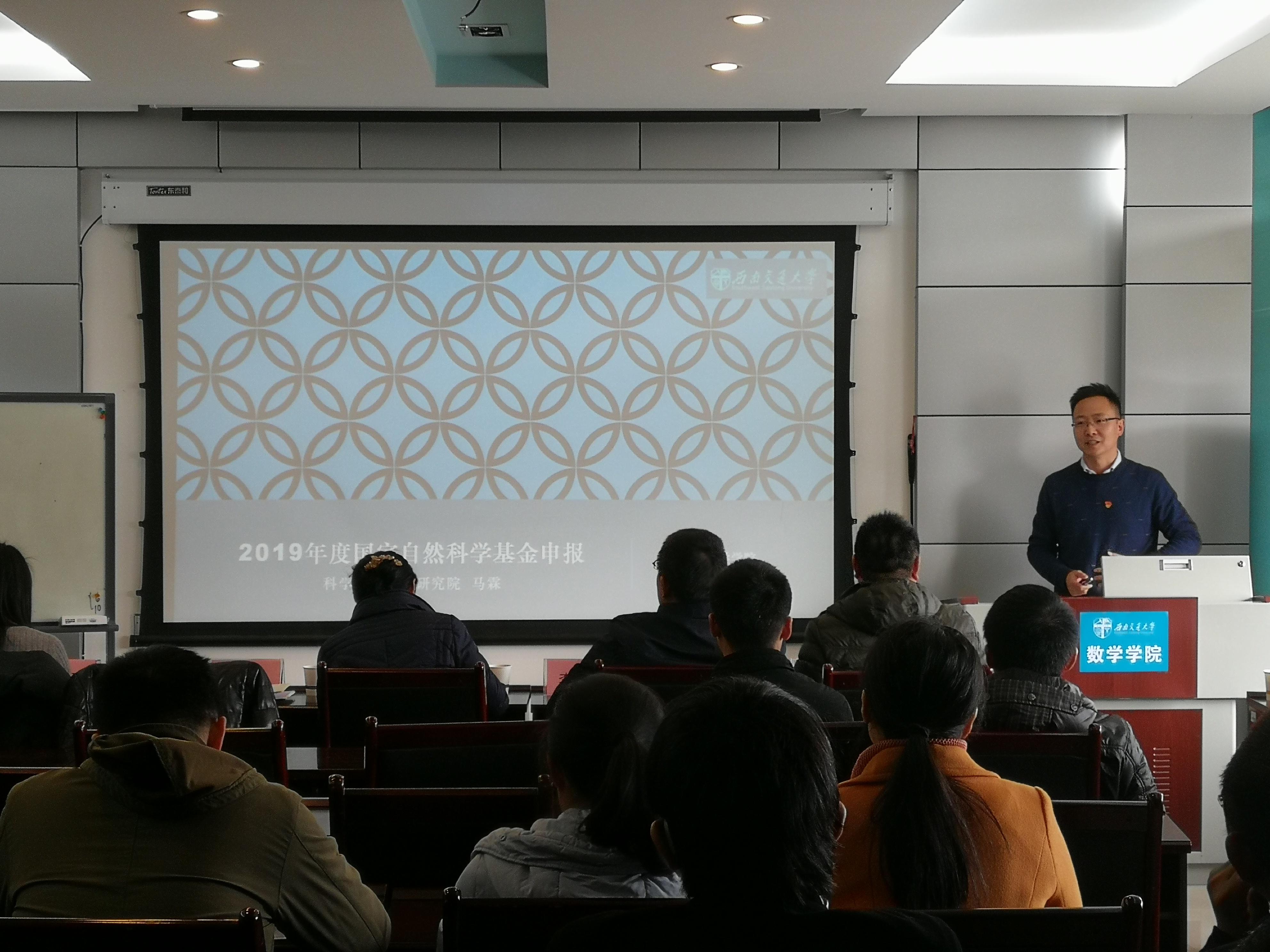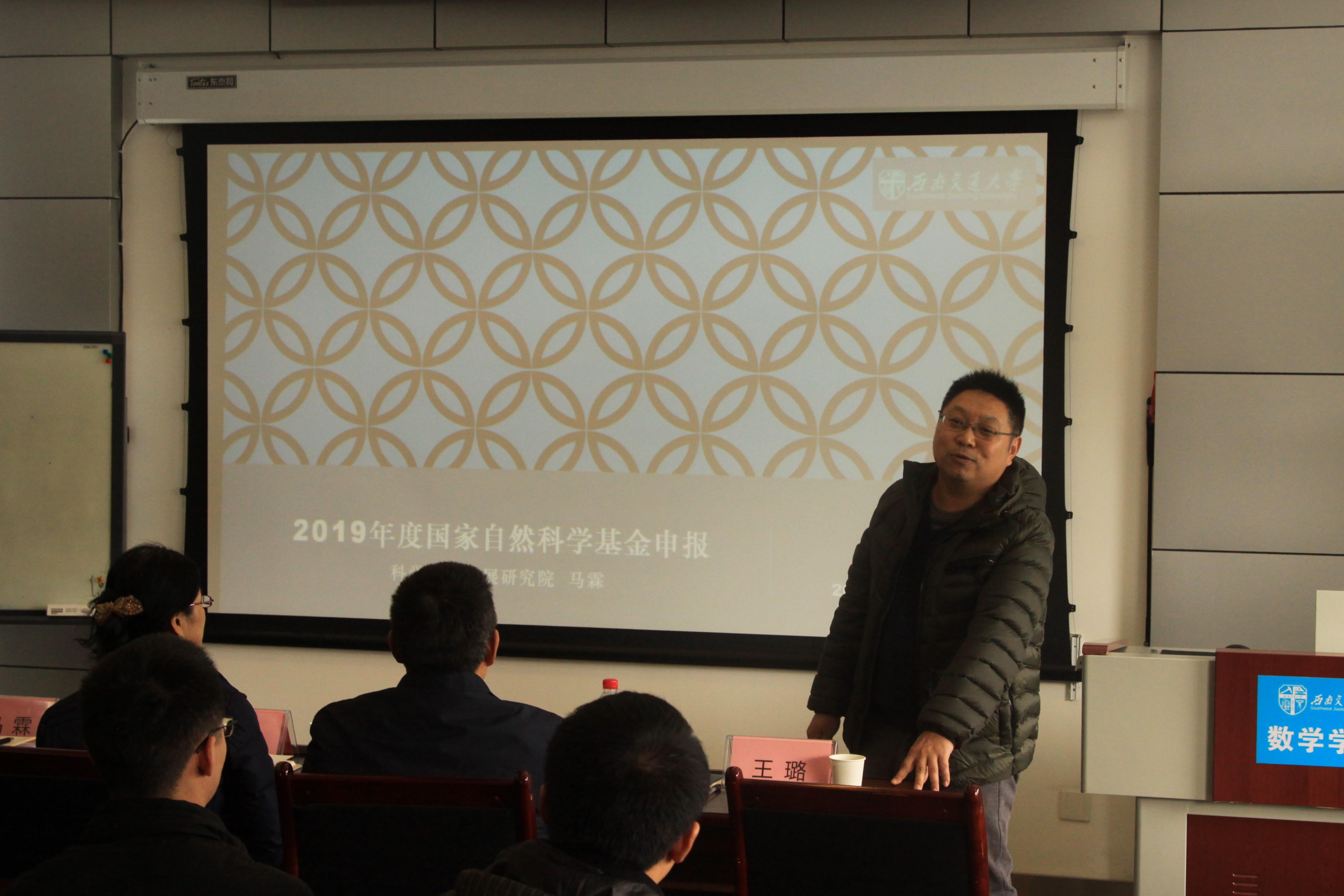 接着,科学技术发展研究院的马霖科长为vwin德赢ac米兰官网的老师们详细介绍了有关国家自然科学基金项目申报的流程和细节。马霖老师从“回顾2018”和“展望2019”两个方向切入,首先介绍了交大在2018年的基金申报情况,并通过图表等方式直观地向大家展示了最近几年学校总体的获资助情况。而提到展望2019,马霖老师先详细描述了基金委的一些新出台政策,在此之后又结合vwin德赢ac米兰官网教师的基本情况给予了在场老师们一些切实的建议,给新一年老师们的基金申报带来很大帮助。