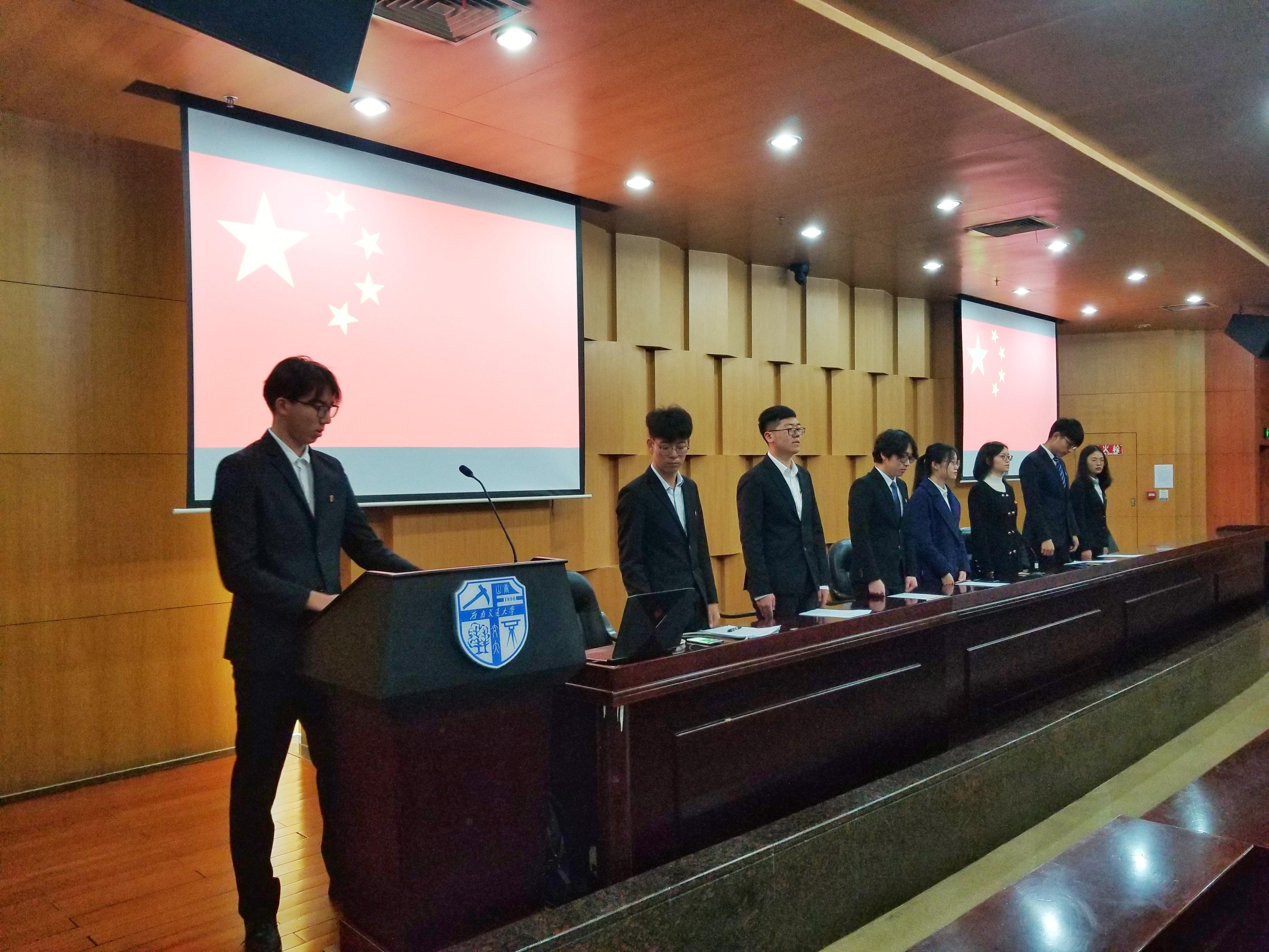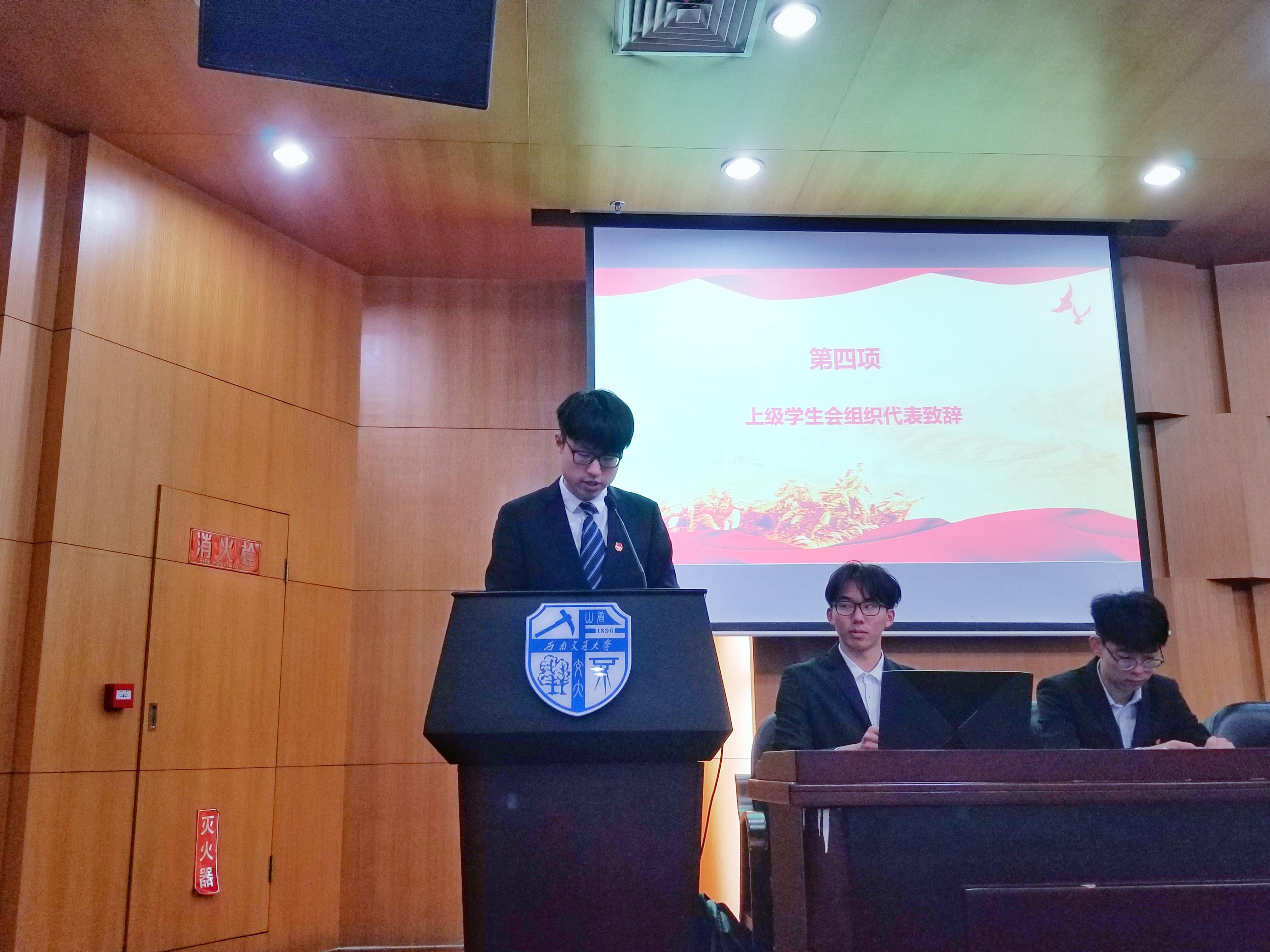 首先进行了本次学生代表大会的开幕式。全体起立,奏唱国歌。主持人介绍了与会的领导嘉宾,接着,vwin德赢ac米兰官网团委书记邓思然老师针对本次大会发表了讲话,上级学生会组织代表、校学生会主席赵天胤也为本次大会致辞。