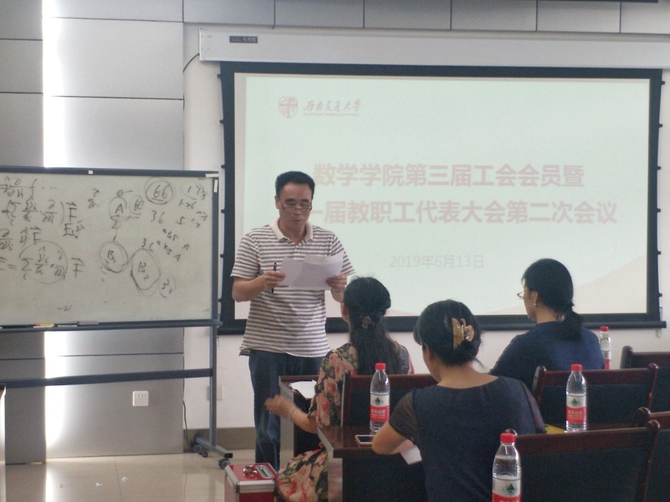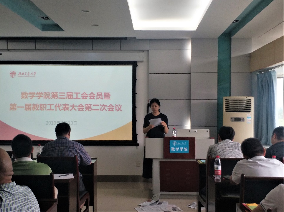 2019年6月13日下午4点,vwin德赢ac米兰官网第三届工会会员暨第一届教职工代表大会第二次会议在X2511召开。本次会议主要议题是讨论和审议《vwin德赢ac米兰官网岗位绩效工资实施方案》(岗位绩效考核与分配办法)(试行)。参加本次会议的有vwin德赢ac米兰官网全体党政院领导、学院工会会员和教职工代表共计36人参加。会议由工会主席田俐萍主持。