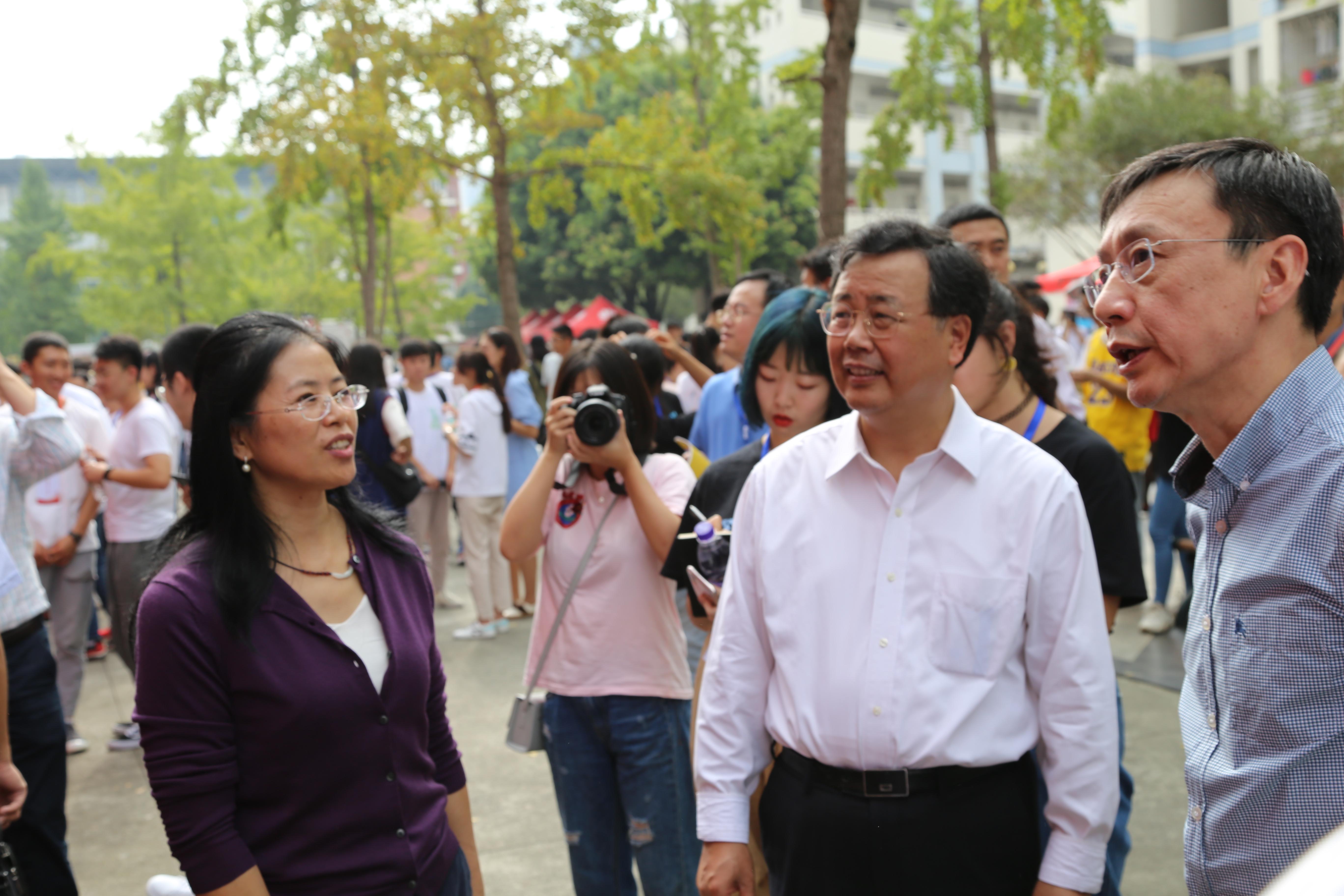 4点半左右校党委书记王顺洪,校长杨丹也来到vwin德赢ac米兰官网迎新点慰问迎新工作者,并关心问候了正在报名的同学。之后王书记和杨校长与学院领导进行了交流,徐革书记说道,现如今对数学感兴趣并且报考vwin德赢ac米兰官网的学生越来越多,这对于vwin德赢ac米兰官网的发展是一个好的现象,之后便向书记校长介绍了vwin德赢ac米兰官网新增的数据科学与大数据专业的一些情况。