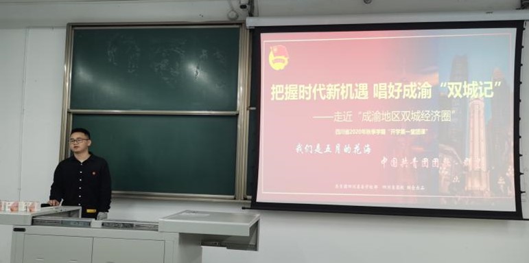 接着,团支书分别从“成渝新启航构建新格局”、“打造新高地共赢新发展”、“把握新机遇建功新时代”三个方向展开本次团课活动。