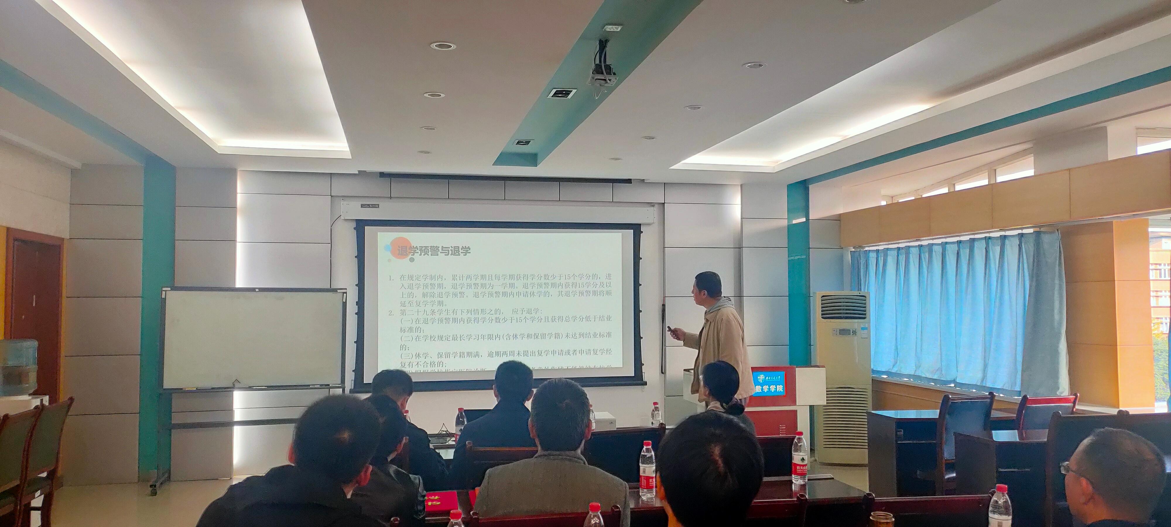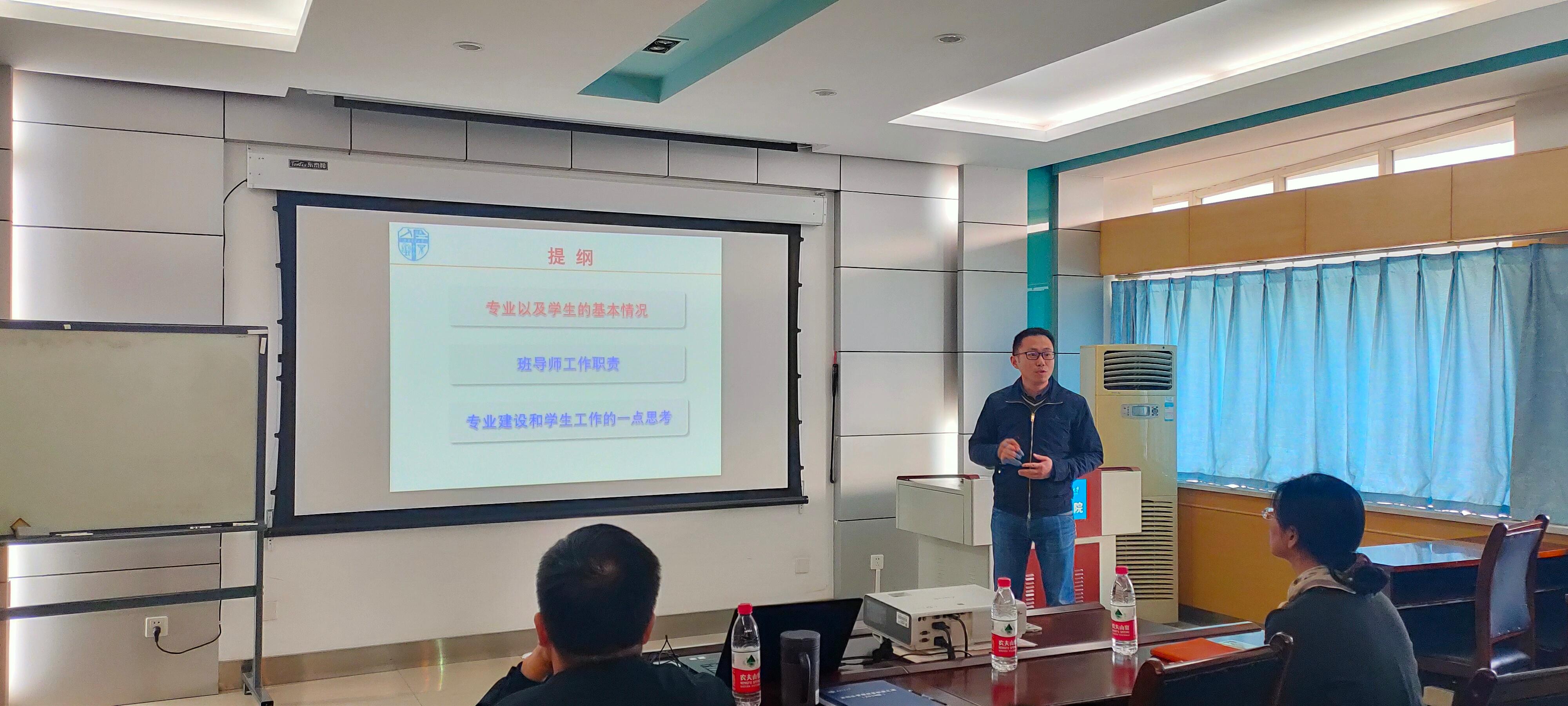 随后,徐革书记介绍了vwin德赢ac米兰官网本科生班导师工作细则,包括本科生班导师选聘流程,工作职责,工作考核,以及分年级重点工作内容。潘小东副院长介绍了学院本科生的学籍情况、升学就业情况和本科生培养方案。本科教务赵志伟介绍了本科生学籍管理细则。最后与会的老师进行了学生管理工作相关的沟通交流。