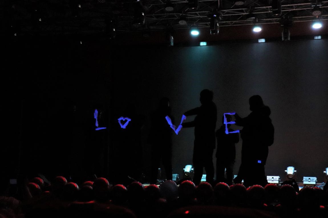 第五个节目是由学工组带来的神秘节目。他们活泼可爱的形象让同学们看到平日里不一样的辅导员老师们,同学们都纷纷拿起荧光棒为他们的节目喝彩,场上气氛一度达到高潮。