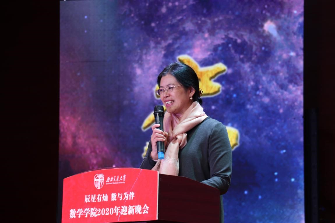随着红色的幕布缓缓地拉开,清醒一下乐队的精彩表演瞬间点燃了全场同学们的激情。开场表演后,vwin德赢ac米兰官网党委书记徐革教授为迎新晚会致辞。徐书记首先对2020级新生的加入表示了欢迎。接着,徐革书记总结了2020年学院取得的丰硕成果,从毕业生升学率、科研竞赛到社会实践,学院的每一位师生都同心共力,取得了突出的成绩。然后,徐革书记在阐述“辰星有灿,数与为伴”这一主题意义的同时也对支持本场晚会的师生表示了感谢。最后,徐革书记给2020级同学们送上祝福与希望,希望同学们能够笃行致远、砥砺前行。
