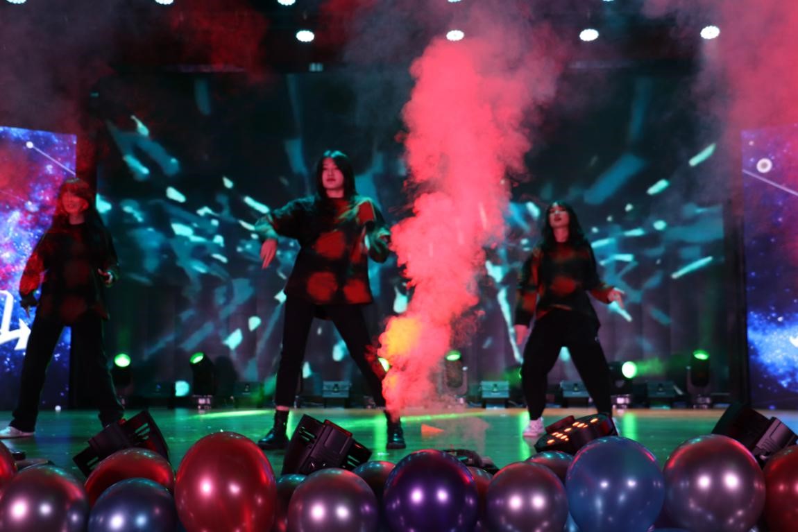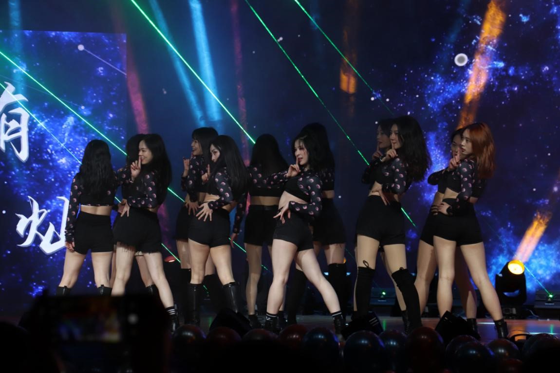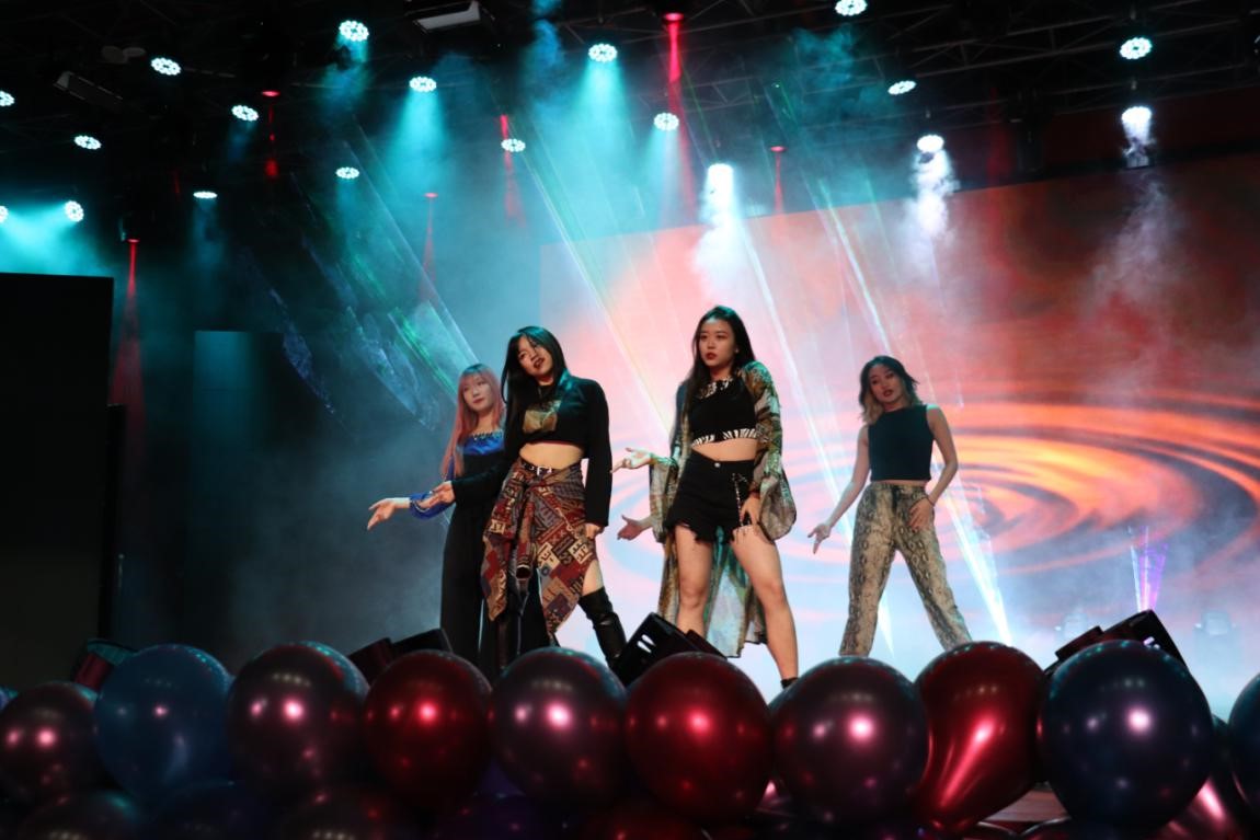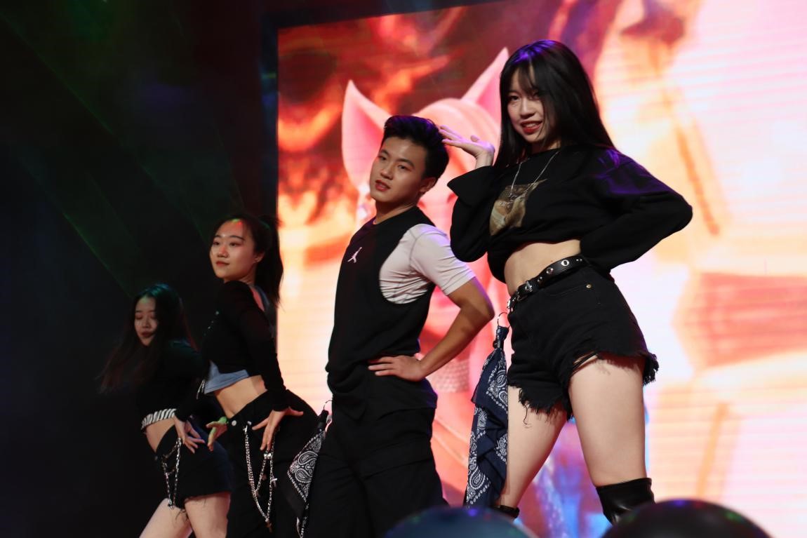 第四个节目是由统计2020-02班和vwin德赢ac米兰官网女团共同带来的女团舞串烧《AYA,The Baddest》,他们曼妙的舞姿和独特的风情燃起了青春之火,引起场下同学们的阵阵欢呼。