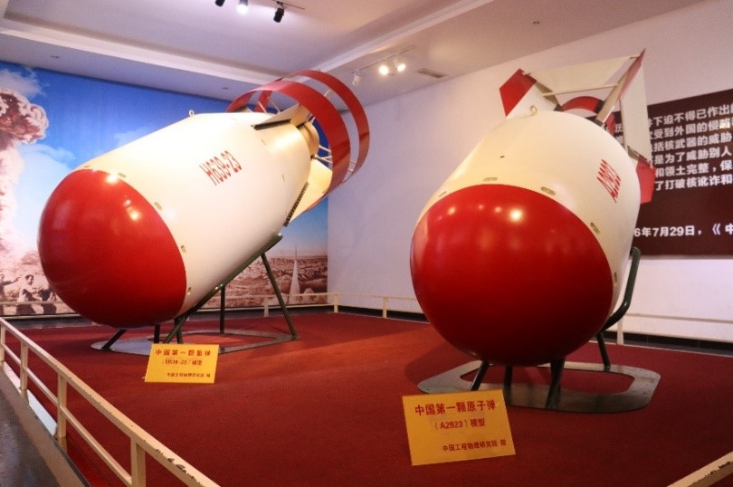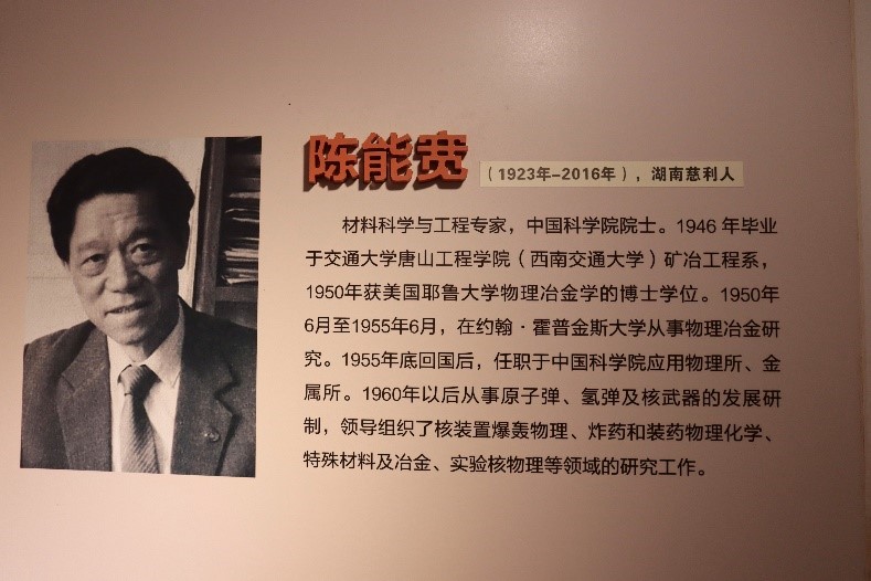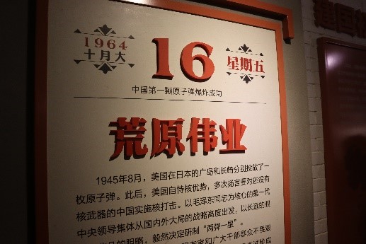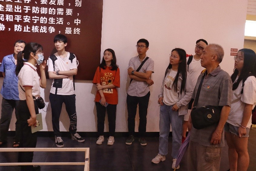 师生们首先参观了两弹历程馆与三防教育展馆。在讲解员的带领下,回顾了建国初期,面临着核讹诈与核威胁,我国的科研工作者将智慧、青春甚至生命奉献给祖国的决心。之后,介绍了以vwin德赢校友陈能宽为代表的一系列两弹杰出人才,他们都曾默默奋战在两弹城这个鲜为人知的地方,怀揣拳拳赤子报国心奉献于惊天动地的事业。场馆利用声光电等手段,通过实物、模型、影像资料等方式,向学院师生展现着“两弹”研制工作的艰辛历程。最后,师生们参观了两弹模型。讲解员介绍道:“这是我国第一颗核航弹的模型,长3米,直径1.5米左右,后面就是它爆炸所产生的蘑菇云。”师生们伴随着讲解,近距离感受科学家为两弹事业所做的伟大贡献。