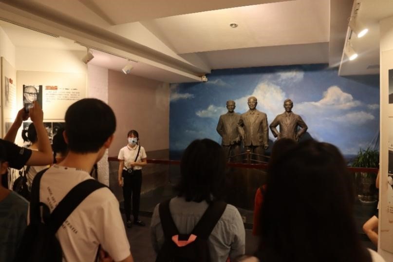 随后,师生们前往邓稼先旧居进行参观。两室一厅的平房,一片香樟和梧桐林,这便是邓稼先曾经的住处。简朴居室的墙上,挂有珍贵的历史资料照片与邓稼先的手稿复印件,展现了他当时丰富的内心世界。参观途中偶遇降雨,师生们在雨水中驻足,向邓稼先塑像致意,敬献花篮,完成献花仪式,向邓稼先表达崇高的敬意与怀念。