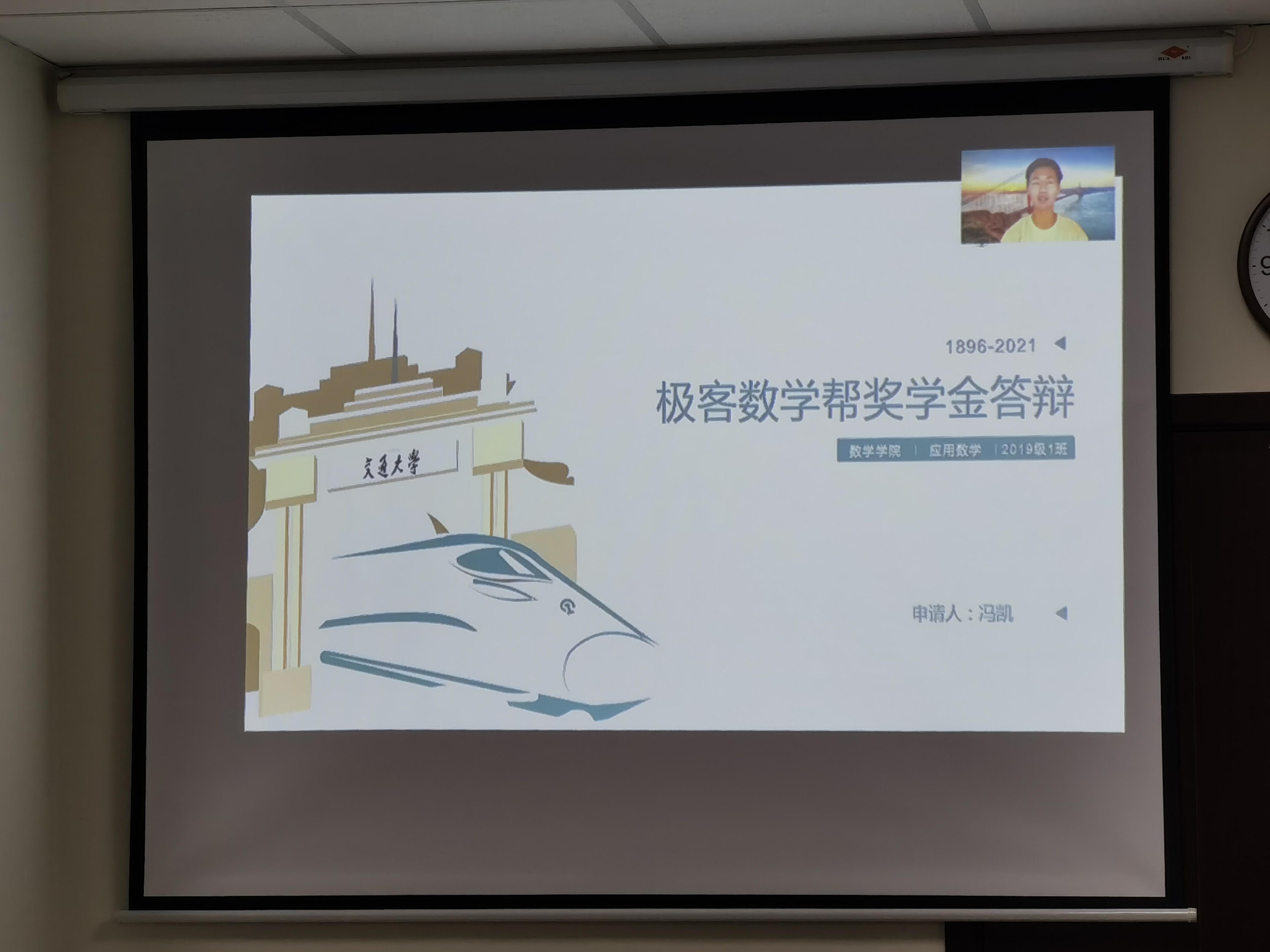 极客数学帮奖助学金的答辩接踵而至,答辩人从学业成绩、科研竞赛、社会实践等方面进行了自我的展示,突显了强劲的实力,展现了交大数学人奋斗拼搏的青春。