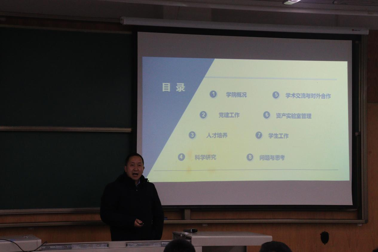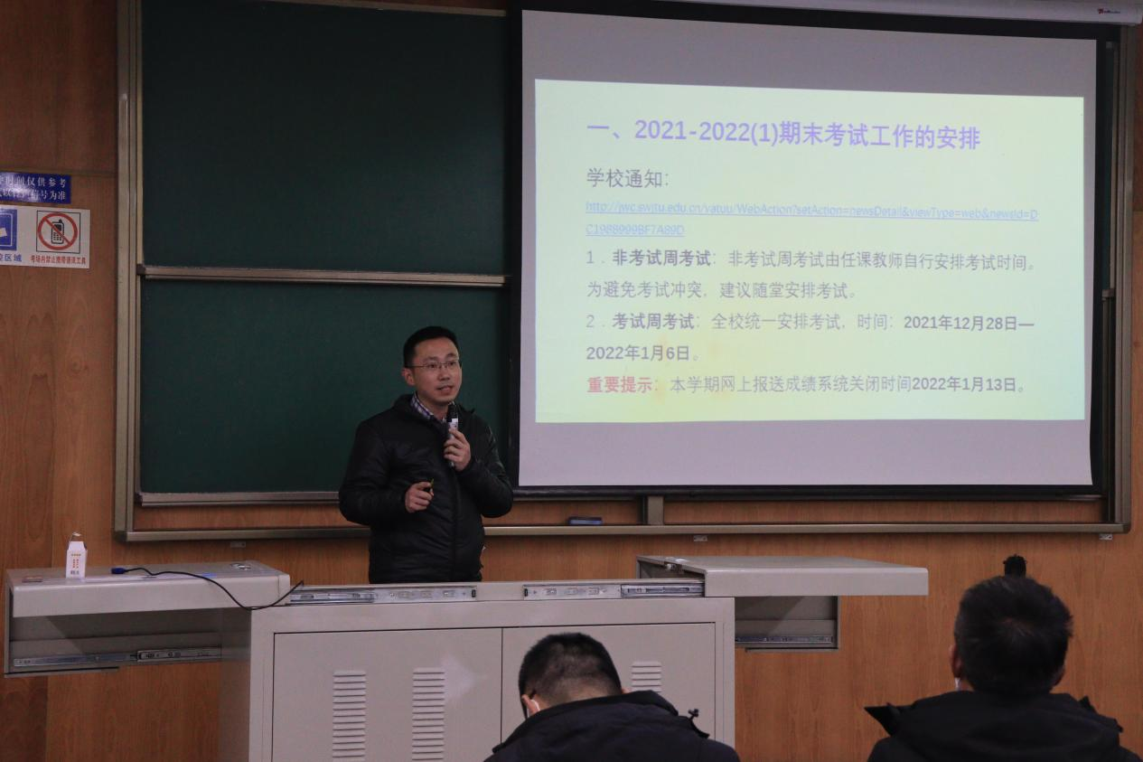 潘小东强调了期末考试工作的重要性,指出学院将严格按照上级部门的安排,积极完成期末考试工作安排,走高质量高要求道路。其次,他谈到学校本科毕业论文工作,并传达了工作要求,介绍学院组织本科生毕业设计论文的工作安排。