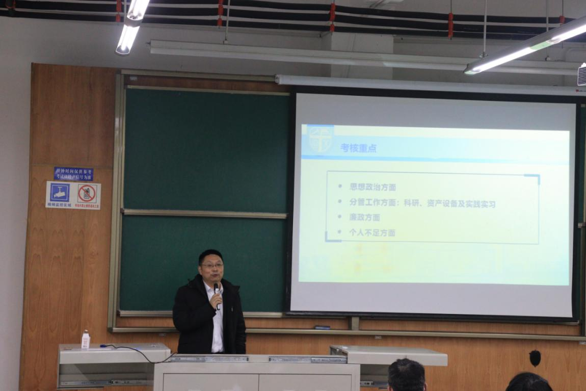 王璐副院长从四个考核方面为标准,指出必须严格规范思想政治方面培养过程,严格进行科研、资产设备及实践学习的指导与审查工作。