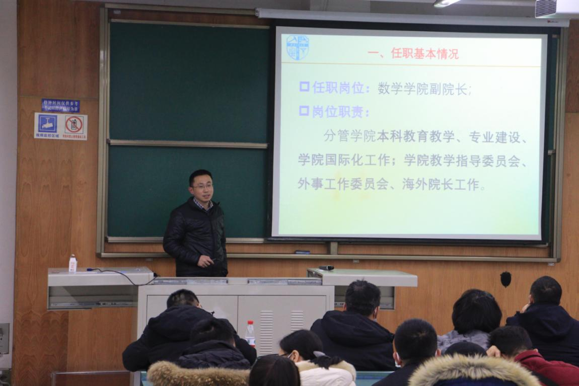 接着,潘小东就学校课程思政工作发言,强调了实施课程思政的重要意义,提出了数学类课程思政的方法与思路。