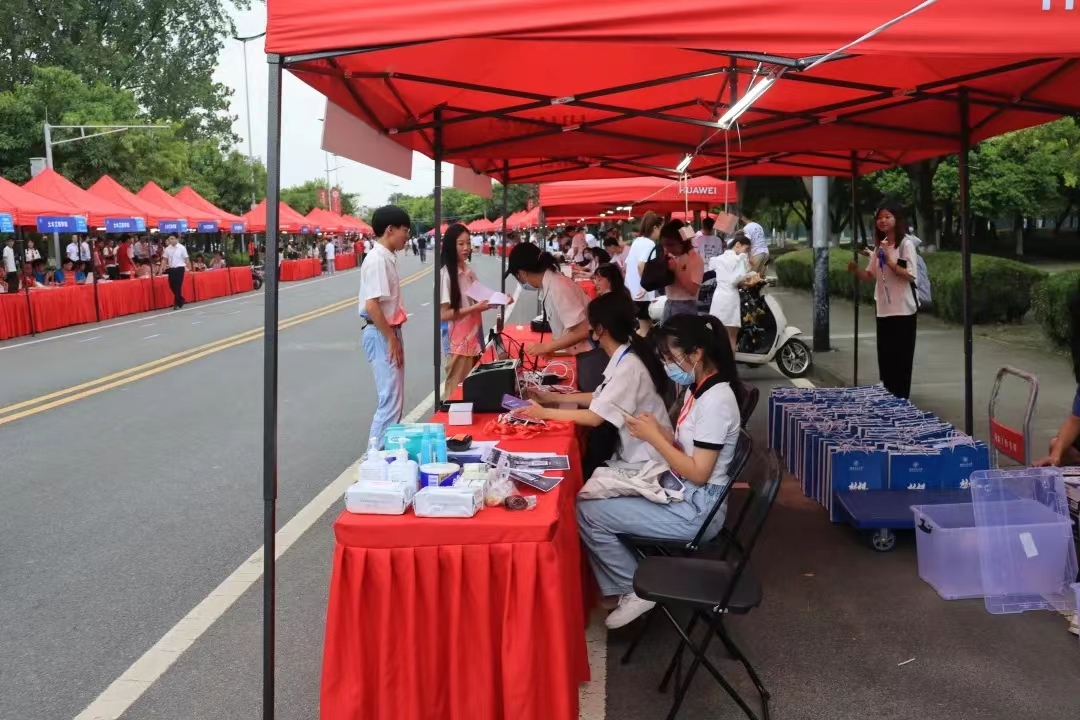 上午8时,随着第一批新生踏入迎新点,志愿者们便开始热情地引导新生们按规定流程进行报到。为落实疫情防控要求,新生们在志愿者的引导下有序排队进入迎新点,完成信息核验、网上确认、线下确认、物资领取等各项报到流程,随后在志愿者的引领下乘坐摆渡车前往北区宿舍。
