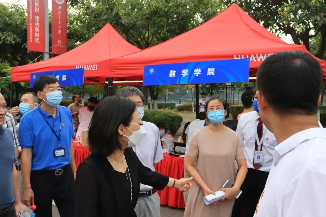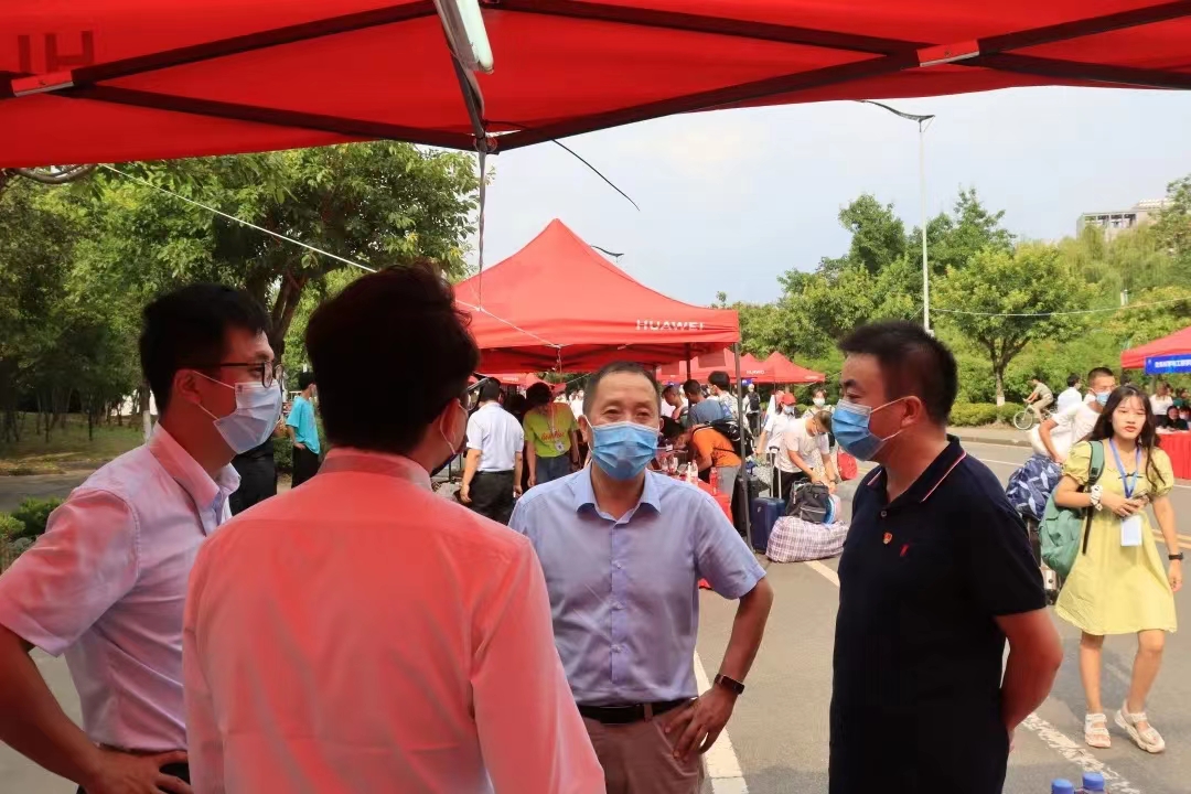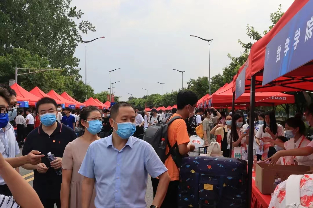 25日上午10时许,校党委副书记杨爱华、副校长康国政莅临vwin德赢ac米兰官网迎新点,亲切走访慰问迎新的师生、志愿者,深入了解学院迎新工作的开展情况并对学院的迎新工作给予高度评价。