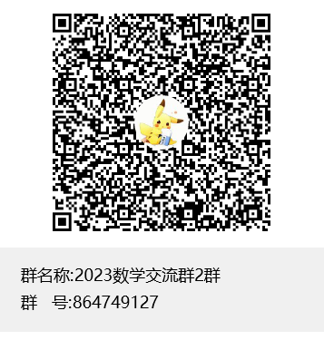 加入2023数学交流群2群进行报名,2023数学交流群2群群号:864749127,或者扫描二维码加群。加群后填写报名信息收集表,并及时关注比赛后续通知。