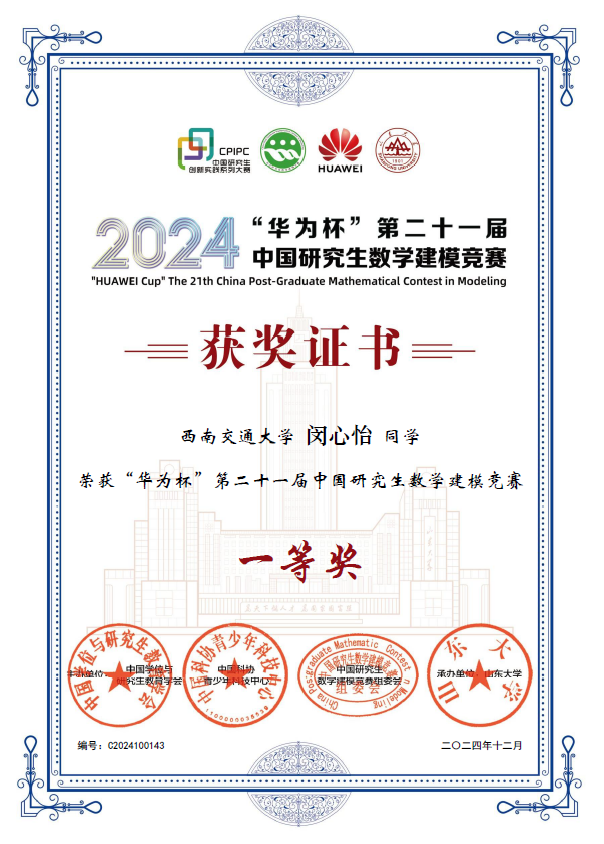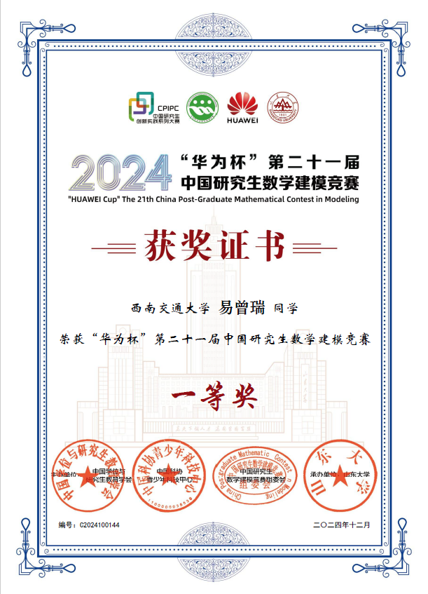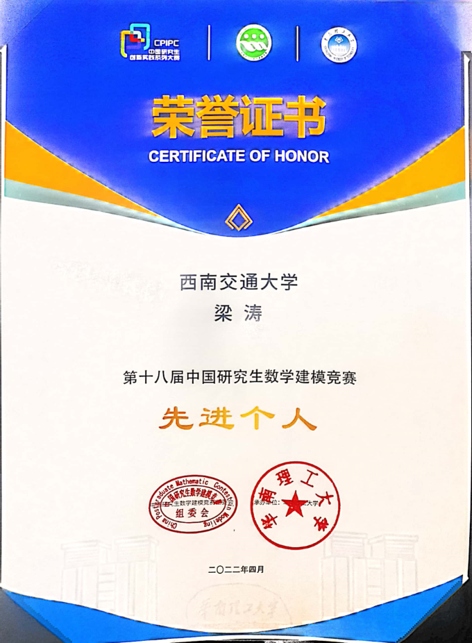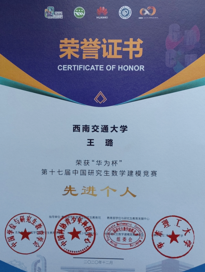 vwin德赢AC米兰合作历来高度重视在校学生的创新能力培养,为学生的全面成长成才提供师资、场地、平台、经费等各种保障。vwin德赢ac米兰官网承担着全校3万余人次/年的数学类课程的教学,建设有《数学建模》国家级一流课程,《数学建模精讲》四川省一流课程,《数学建模精讲》大学生慕课,出版了《数学建模基础及其应用》教材等。学校建立了完整的教学指导团队,竞赛及培训体系。由vwin德赢ac米兰官网牵头组织的中国研究生数学建模竞赛屡创佳绩,据不完全统计,近年来,vwin德赢先后有18个队获全国一等奖;217个队获全国二等奖,216个队获全国三等奖;vwin德赢已连续多届荣获竞赛组织奖,尤其2022年获得优秀组织奖第六名的优异成绩。