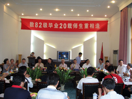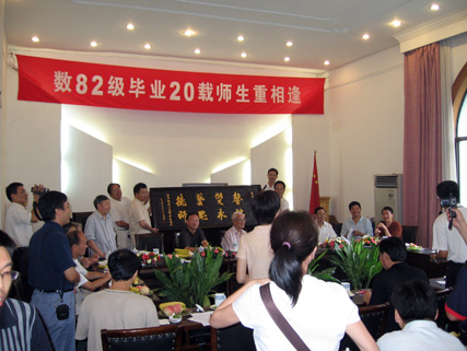 2006年7月22日,在学校百十周年华诞之际,数学系82级校友毕业20年返校纪念活动在镜湖宾馆隆重举行。郭可瞻教授、黄盛清教授等多位给82级同学的任课教师、数学系的老领导、老学长、现任领导等与数学82级36位同学济济一堂,话二十载分别经历,商数学系发展大计。